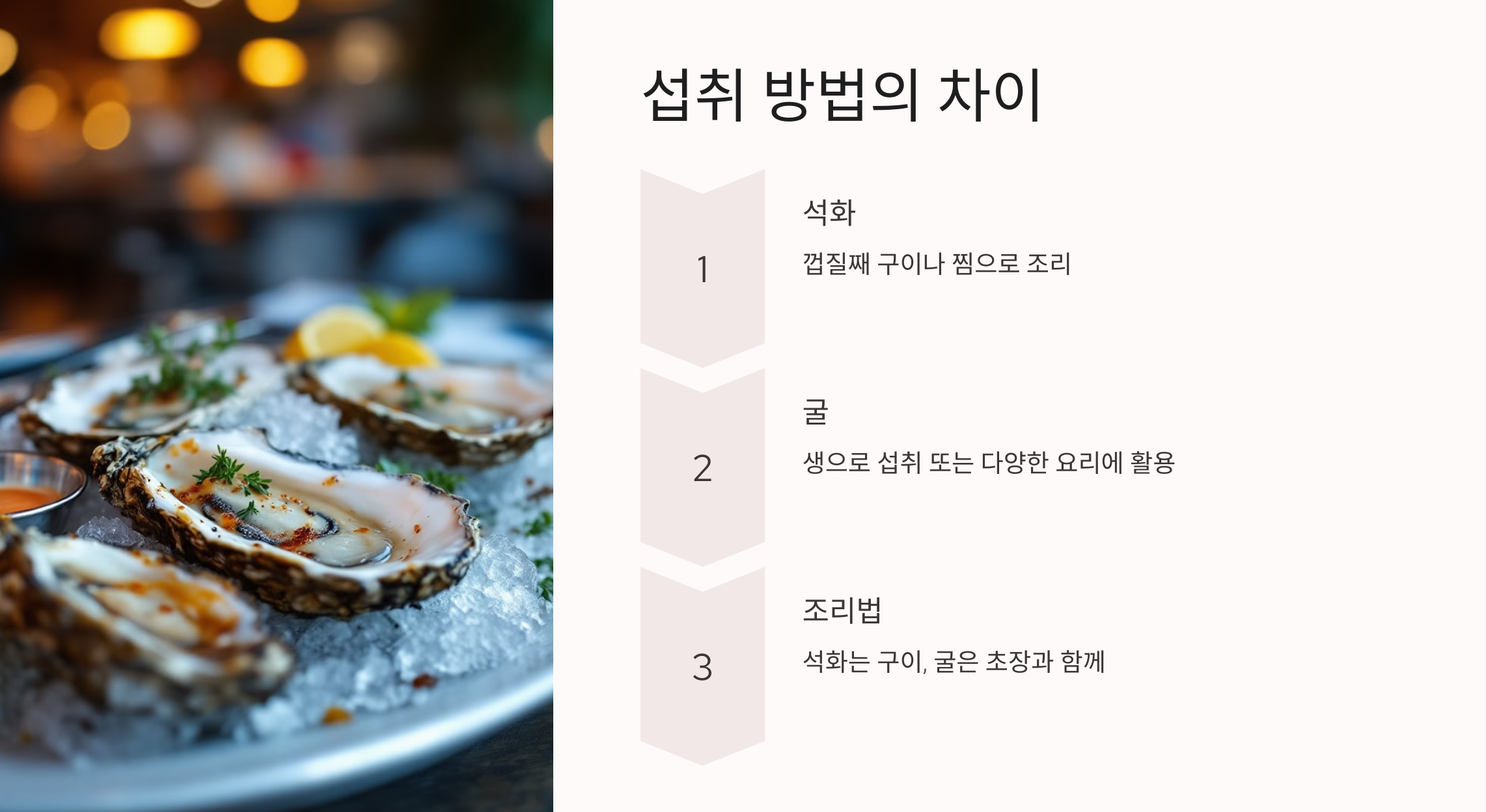 석화와 굴은 섭취 방법에서도 차이가 있습니다.
