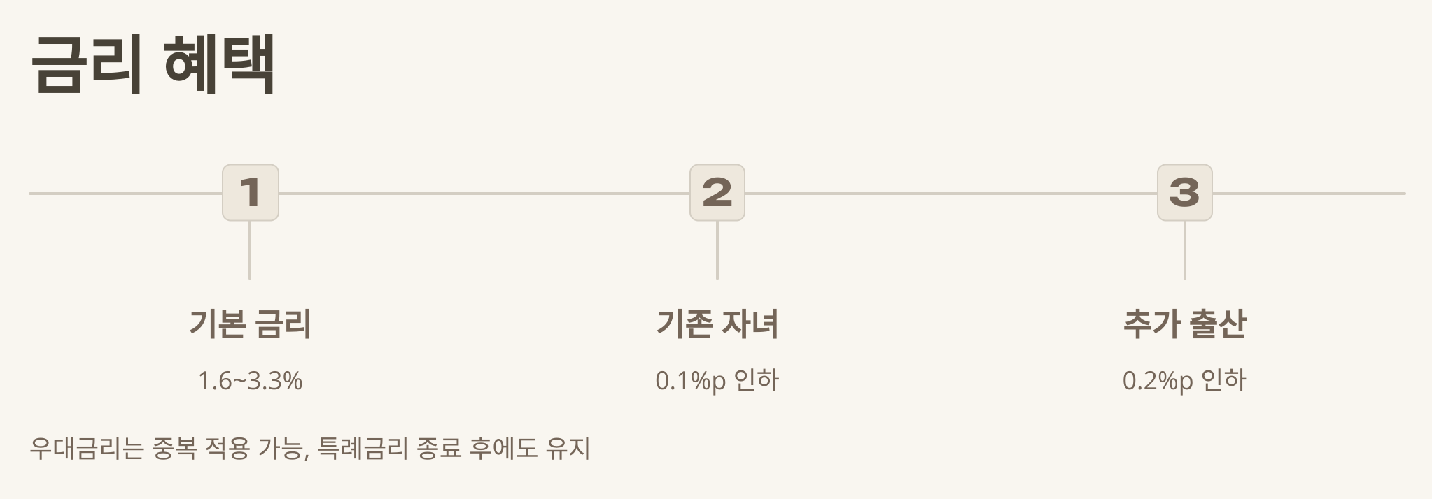 • 대상: 대출신청일 기준 2년 내 출산한 무주택 세대주