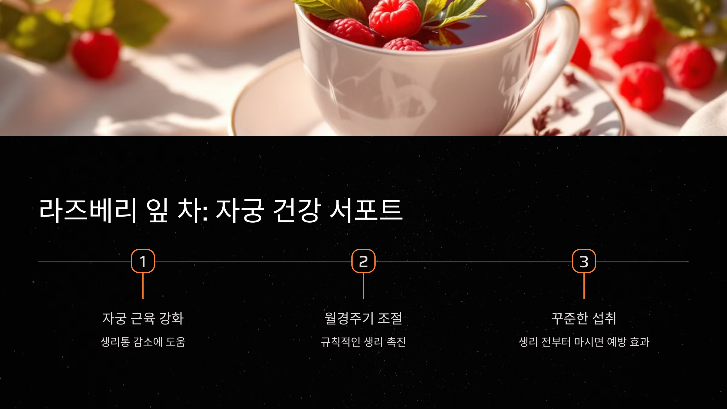 라즈베리 잎 차는 생리통을 줄이고 자궁 건강을 돕는 데 특히 추천됩니다.
