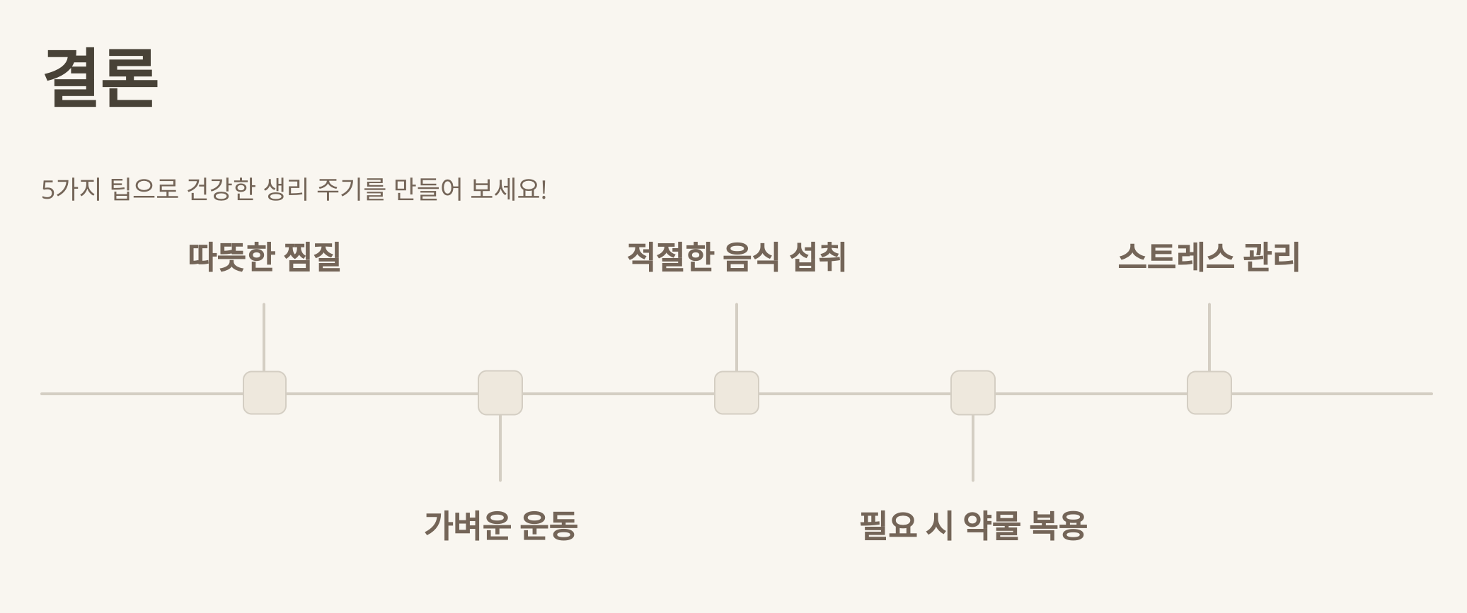 💡 Tip: 생리 기간 동안은 스트레스를 줄이고 몸을 편안하게 하는 데 집중하세요.
