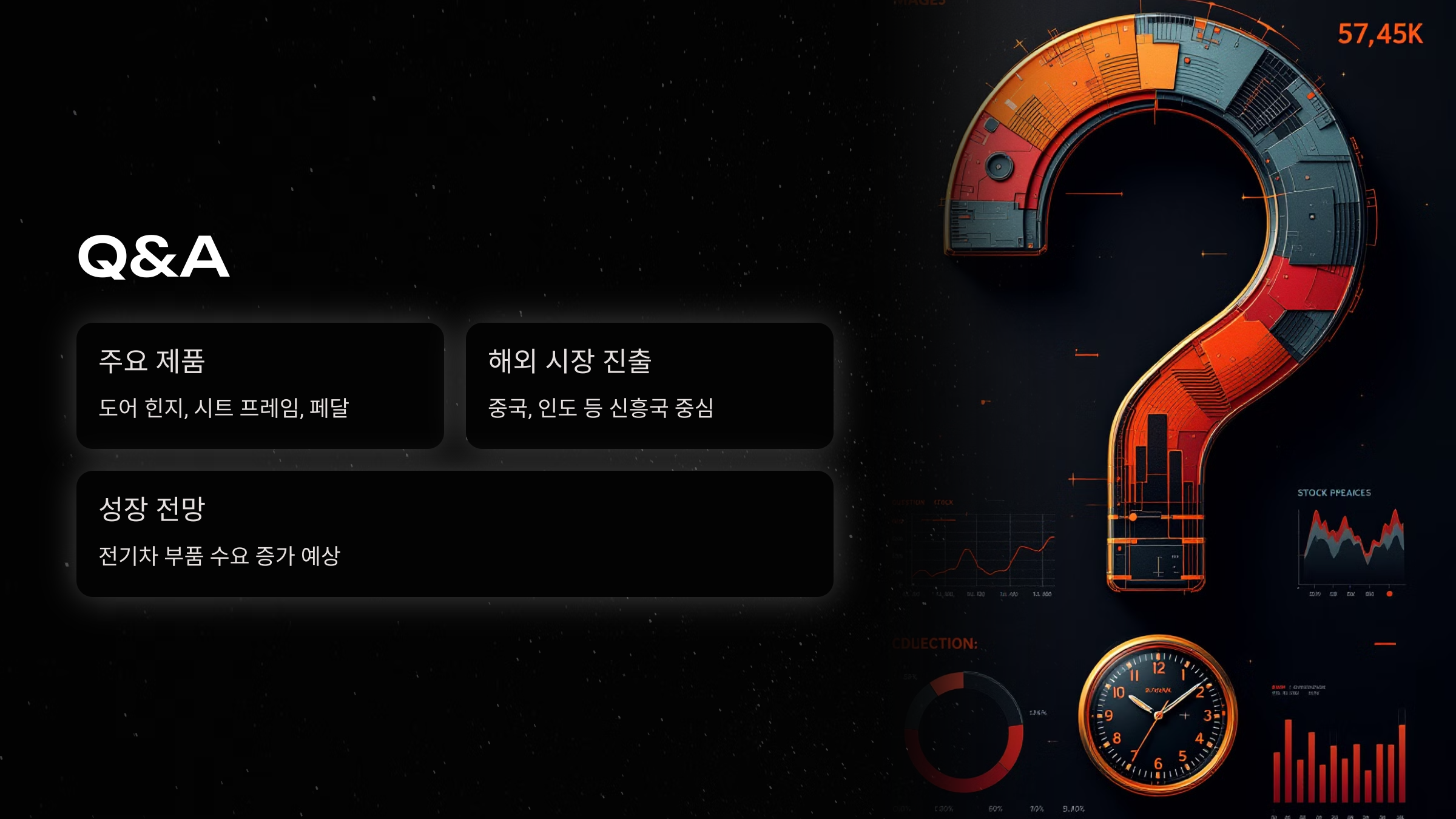 A3: 전기차 시장의 성장과 함께 관련 부품 수요 증가가 예상되며, 스마트 팩토리 구축을 통한 생산성 향상으로 경쟁력 강화가 기대됩니다. 다만, 글로벌 경쟁 심화와 원자재 가격 변동 등의 리스크 요인도 존재합니다.