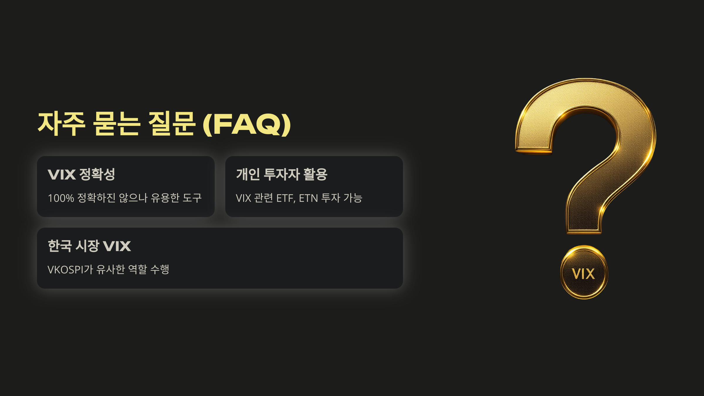 A: VIX는 미래 예측 지표이므로 100% 정확할 순 없어요. 다만, 시장의 전반적인 심리를 파악하는 데 유용한 도구입니다.
