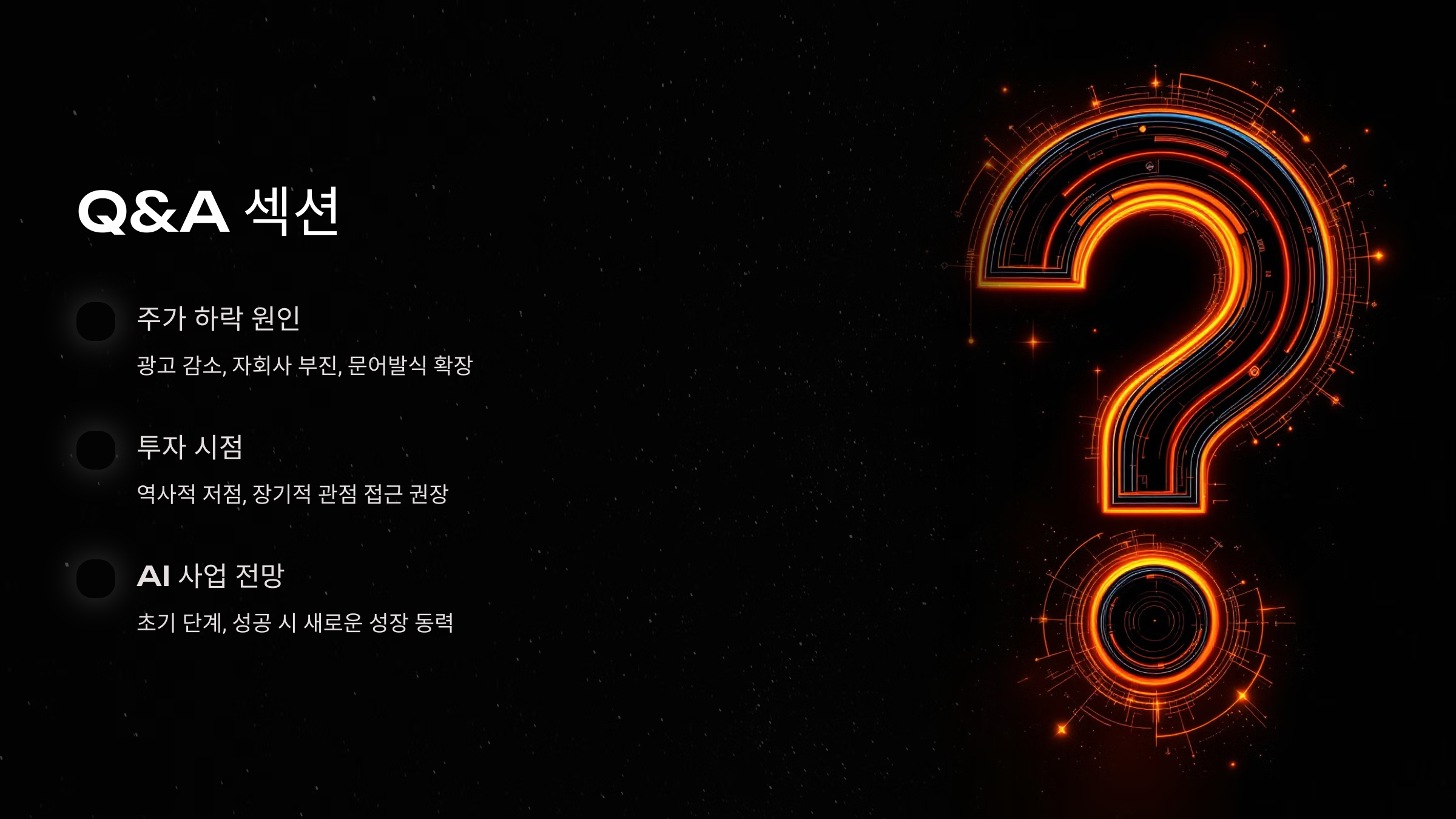 A3: AI 사업은 초기 단계로, 구체적인 수익 모델이 아직 명확하지 않습니다. 그러나 성공한다면 새로운 성장 동력이 될 가능성이 큽니다.