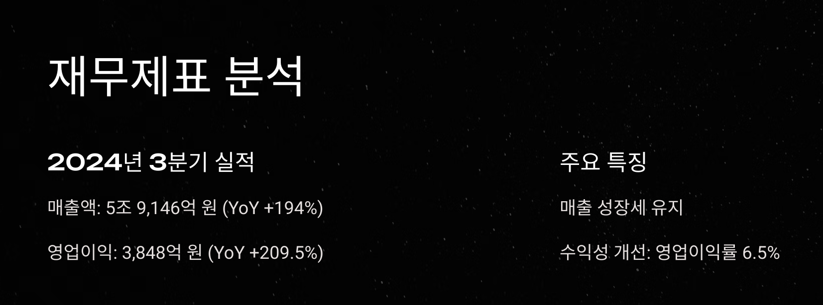 • 매출액: 약 5조 9,146억 원 (YoY +194%)