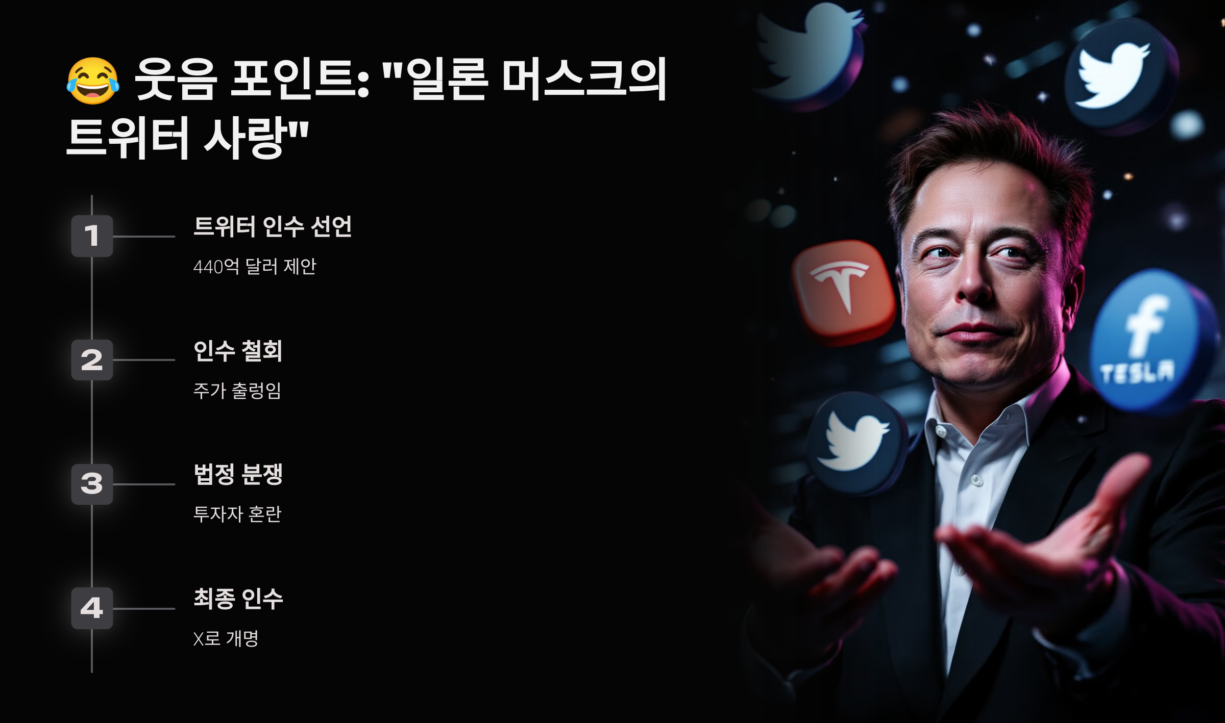 😂 웃음 포인트: "일론 머스크의 트위터 사랑"