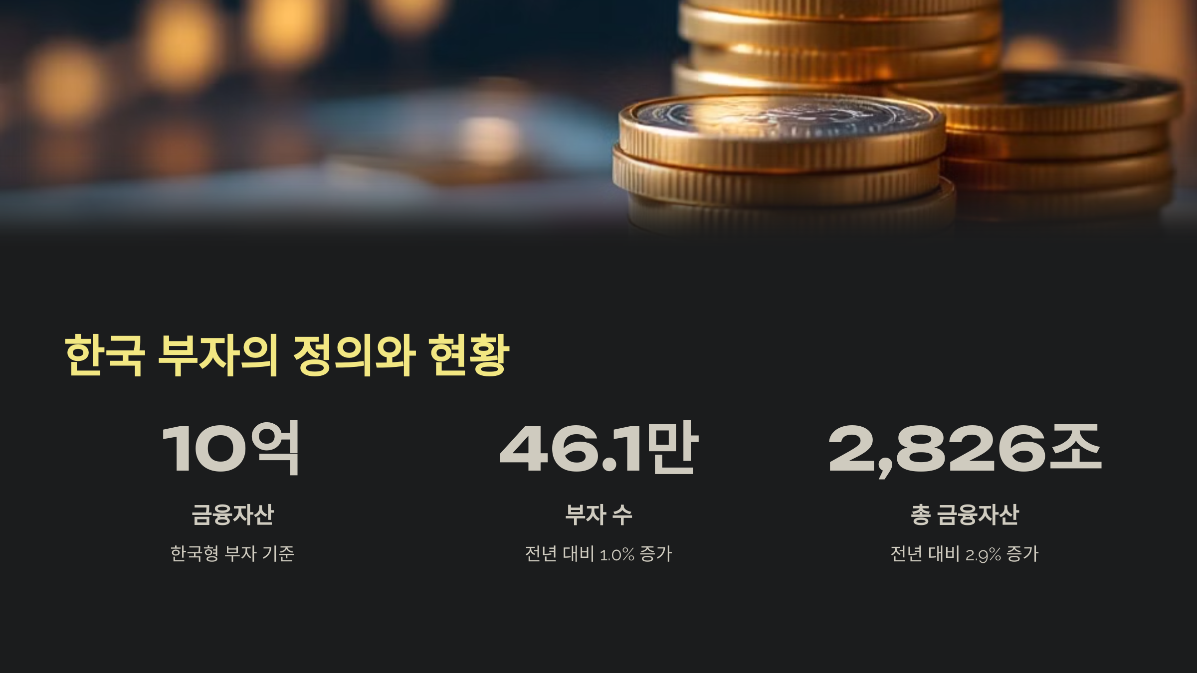 안녕하세요, 재테크에 관심 있는 여러분! 오늘은 KB금융그룹의 '2024 한국 부자 보고서'를 바탕으로 대한민국 부자들의 현황과 2025년을 향한 투자 전략을 살펴보겠습니다. 이 글을 통해 여러분도 부자의 길에 한 발짝 더 가까워질 수 있을 거예요!