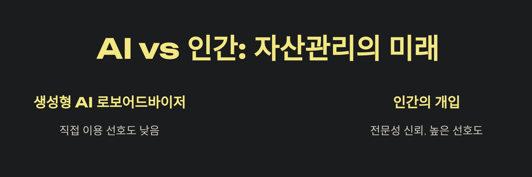 흥미롭게도, 한국 부자들은 최신 기술보다는 인간의 전문성을 더 신뢰하는 것으로 나타났습니다. '생성형 AI 로보어드바이저'의 직접 이용보다는 '인간의 개입'을 선호한다고 합니다.