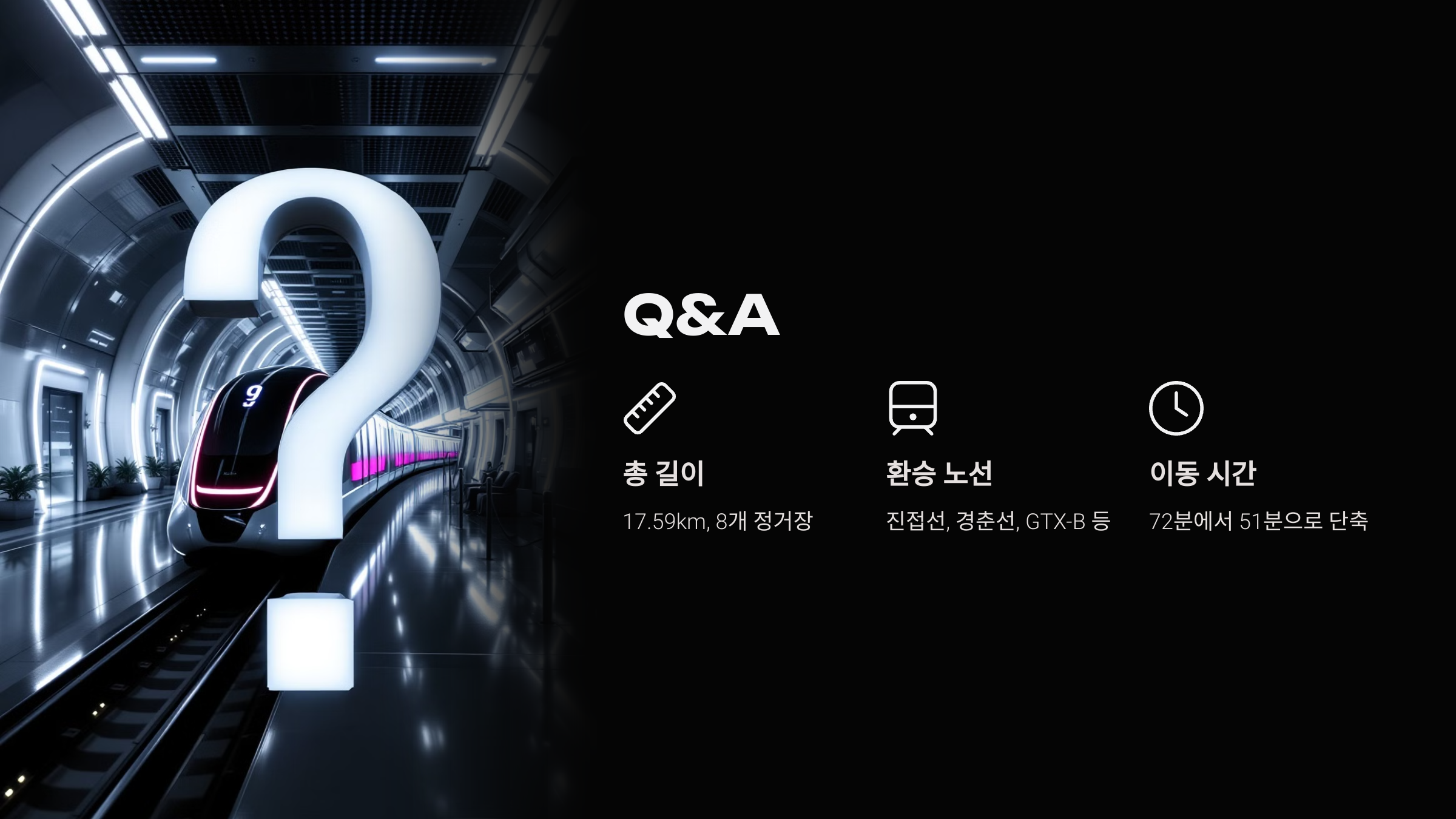 A2: 진접선(4호선), 경춘선, 경의중앙선, GTX-B 등과 연계될 예정입니다.