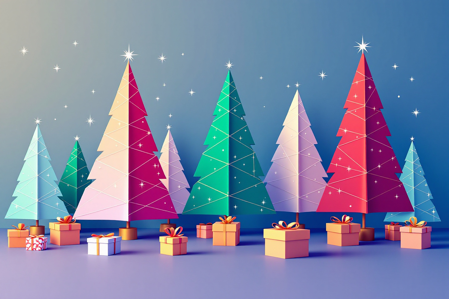 ✅ 추천 디자인: 미니멀한 크리스마스 트리와 오피스 소품이 조화롭게 배치된 모던한 일러스트