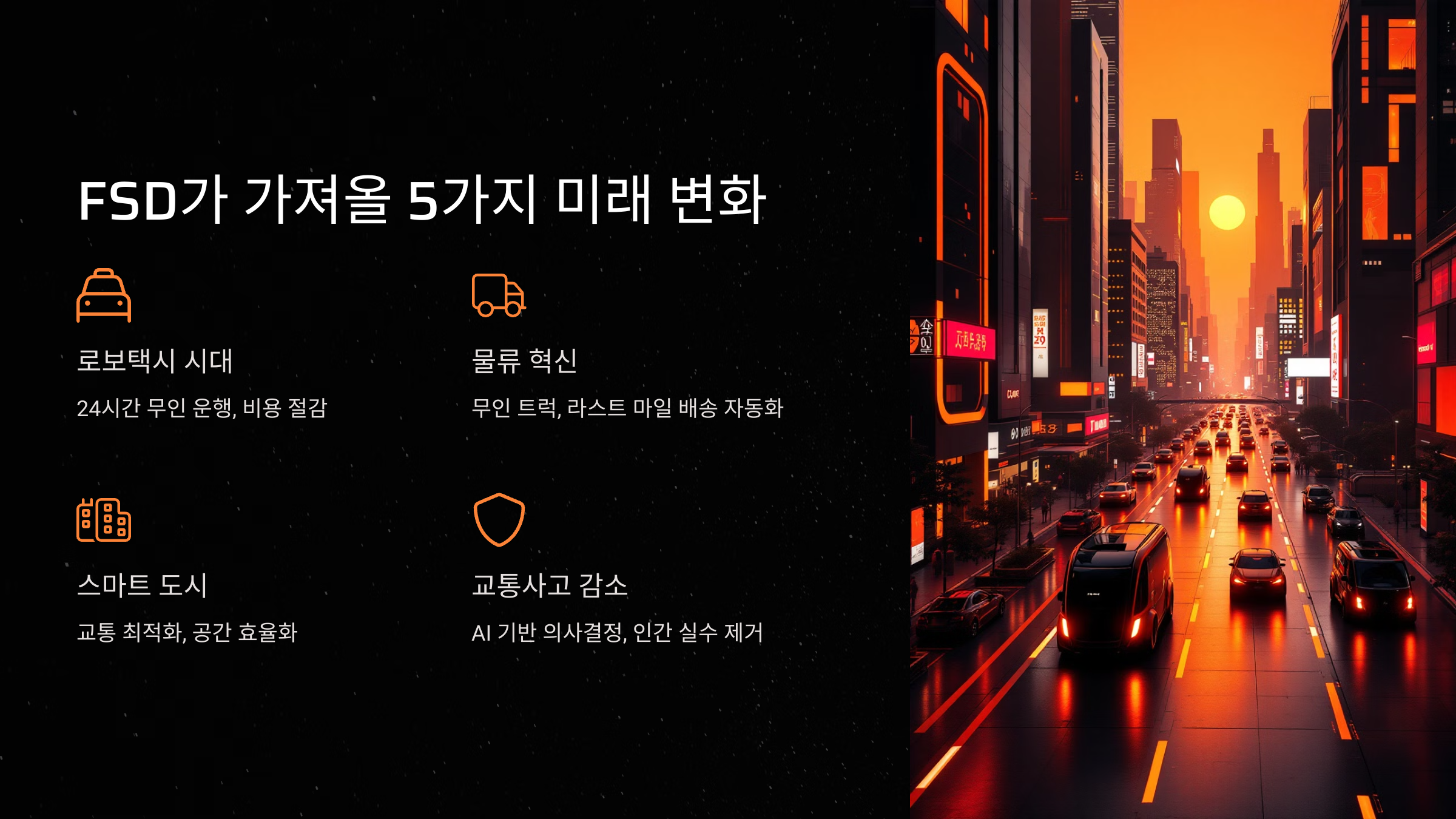FSD는 스마트 도시(Smart City)를 가속화하는 핵심 기술로 작용할 것입니다.