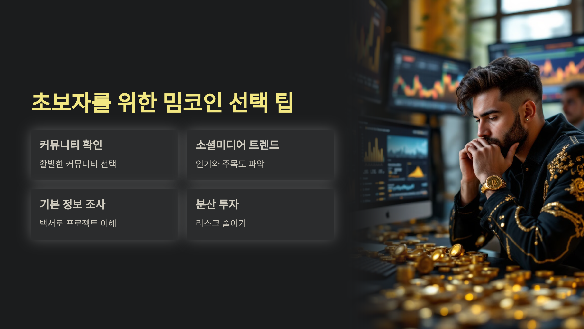 밈코인은 소셜미디어에서 과대 포장되는 경우가 많습니다. '지금 투자하지 않으면 손해 본다'는 심리에 흔들리지 말고 신중하게 판단하세요.