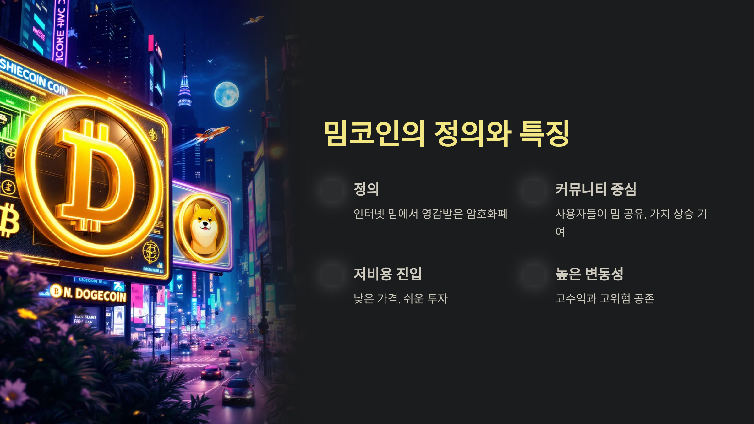 암호화폐 시장이 성장하면서 다양한 코인들이 등장하고 있습니다. 그중에서도 유쾌하고 재미있는 개념으로 주목받는 밈코인은 이제 많은 투자자들의 관심을 받고 있죠. 😊 이번 글에서는 밈코인의 정의, 특징, 그리고 투자 시 알아야 할 기본 정보를 초보자도 쉽게 이해할 수 있도록 소개하겠습니다.
