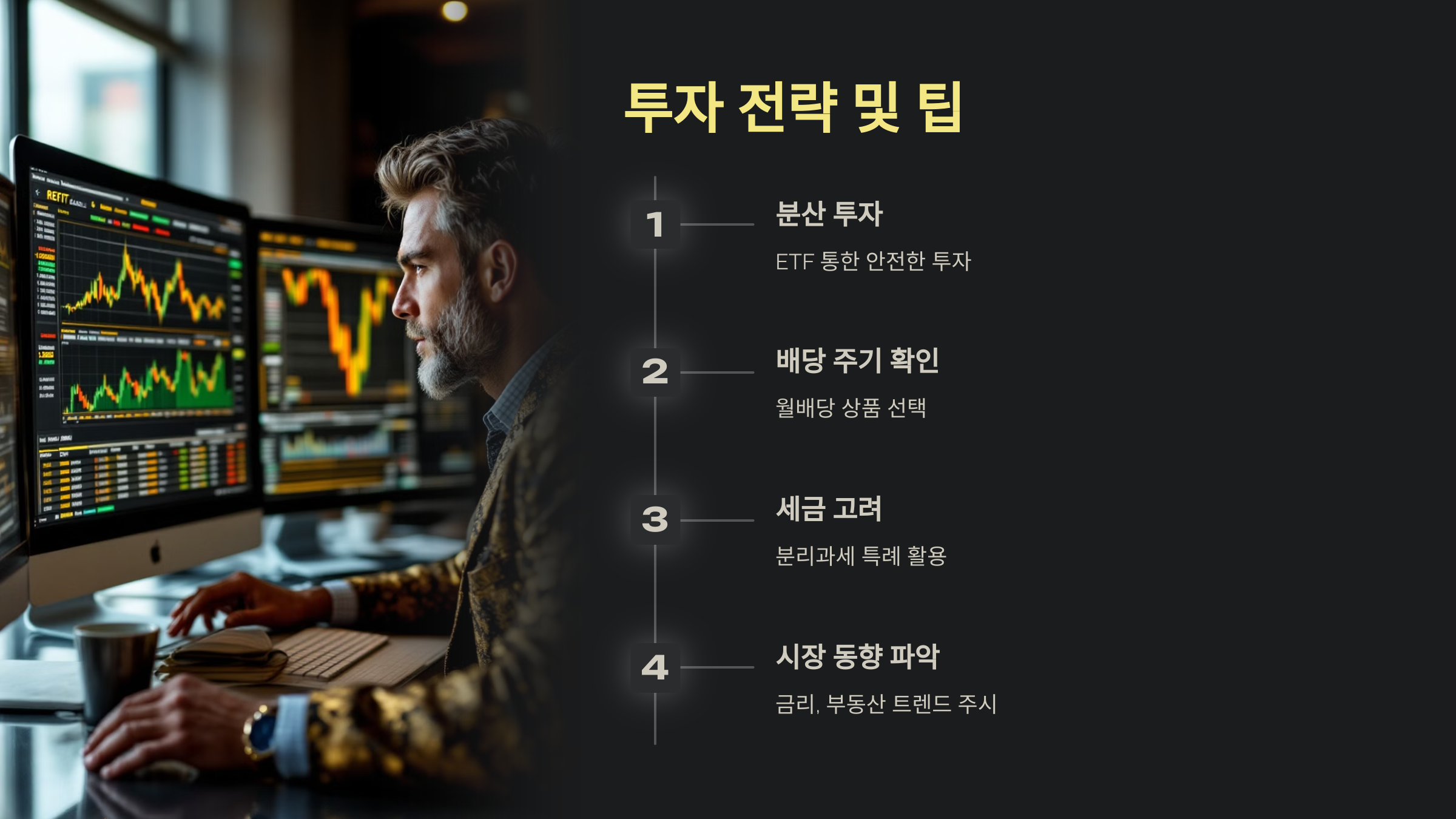1. 분산 투자: 개별 리츠보다는 ETF를 통한 분산 투자가 안전합니다.