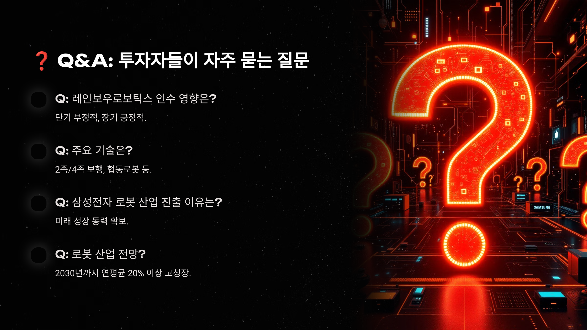 1. Q: 삼성전자의 레인보우로보틱스 인수가 주가에 미치는 영향은?