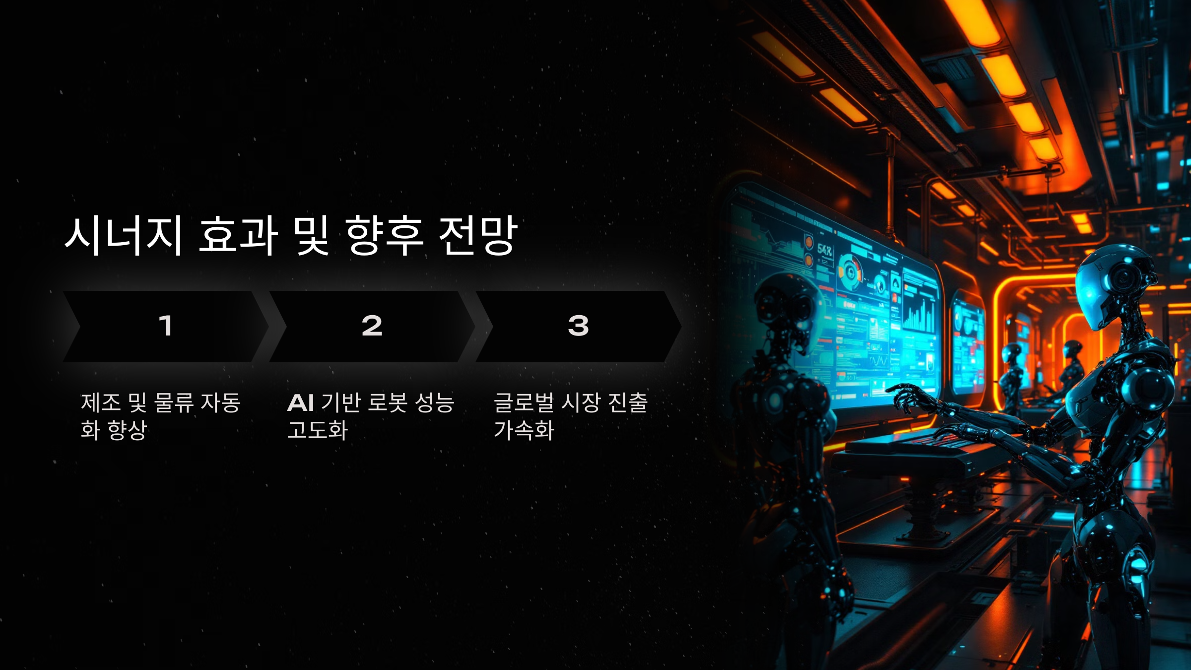 • 기술 경쟁력 강화: AI, 소프트웨어와 로봇 기술의 결합으로 차세대 기술 선점 기대