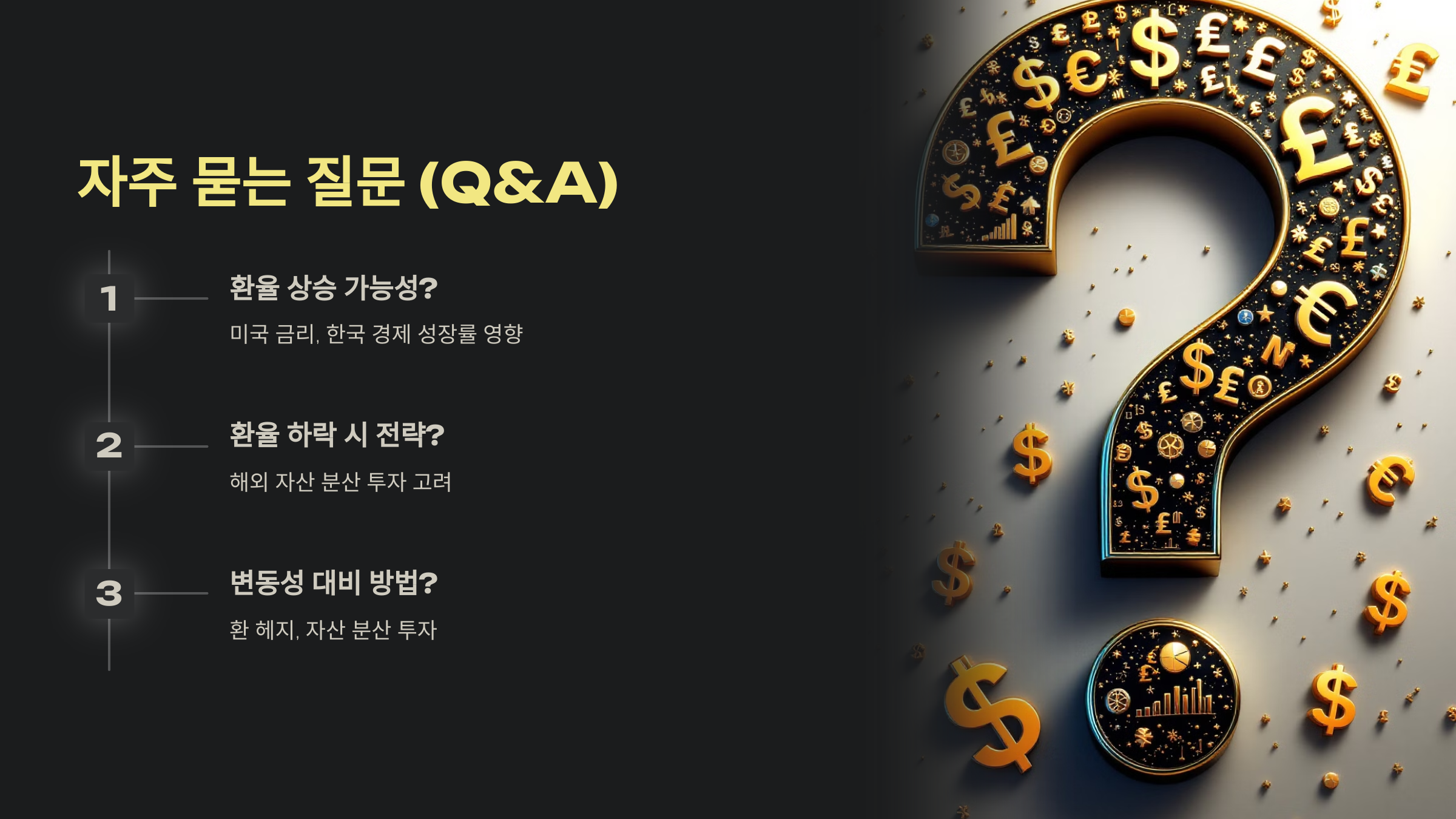 A3: 환 헤지 전략을 활용하여 환율 변동에 따른 리스크를 최소화할 수 있습니다. 또한, 자산 분산 투자가 중요합니다.