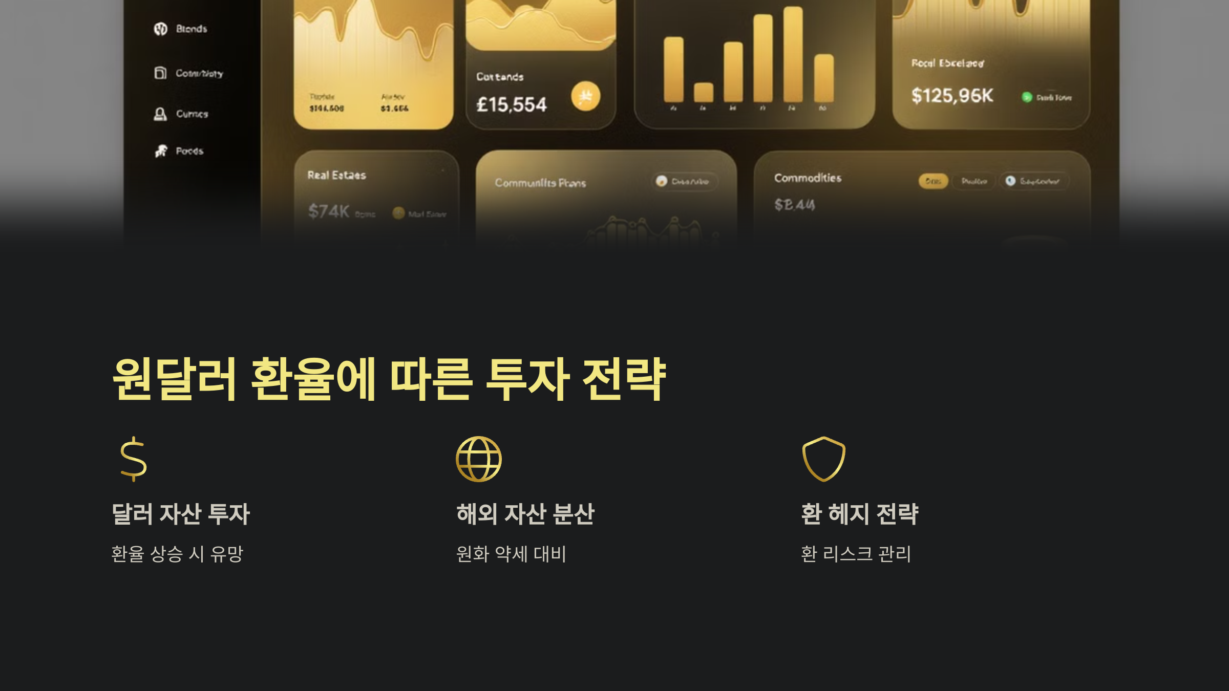 2025년 원달러 환율 상승이 예상될 경우, 달러 자산에 대한 투자는 유망한 전략이 될 수 있습니다. 미국의 금리가 계속해서 상승한다면, 미국 국채나 달러 기반의 자산에 투자하는 것이 안정적인 수익을 가져올 수 있습니다.