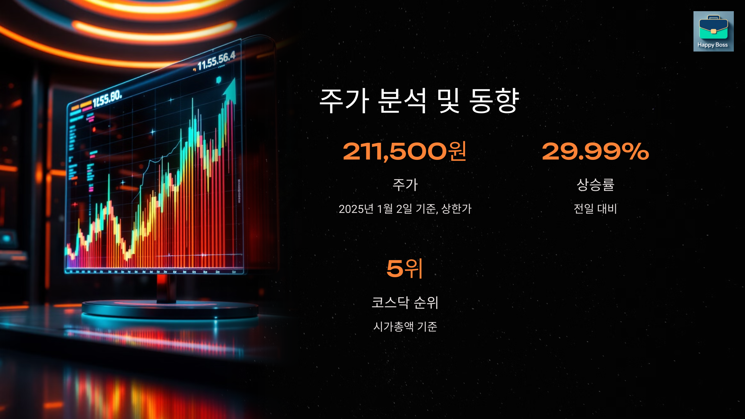 • 2025년 1월 2일 기준 주가: 211,500원 (상한가)
