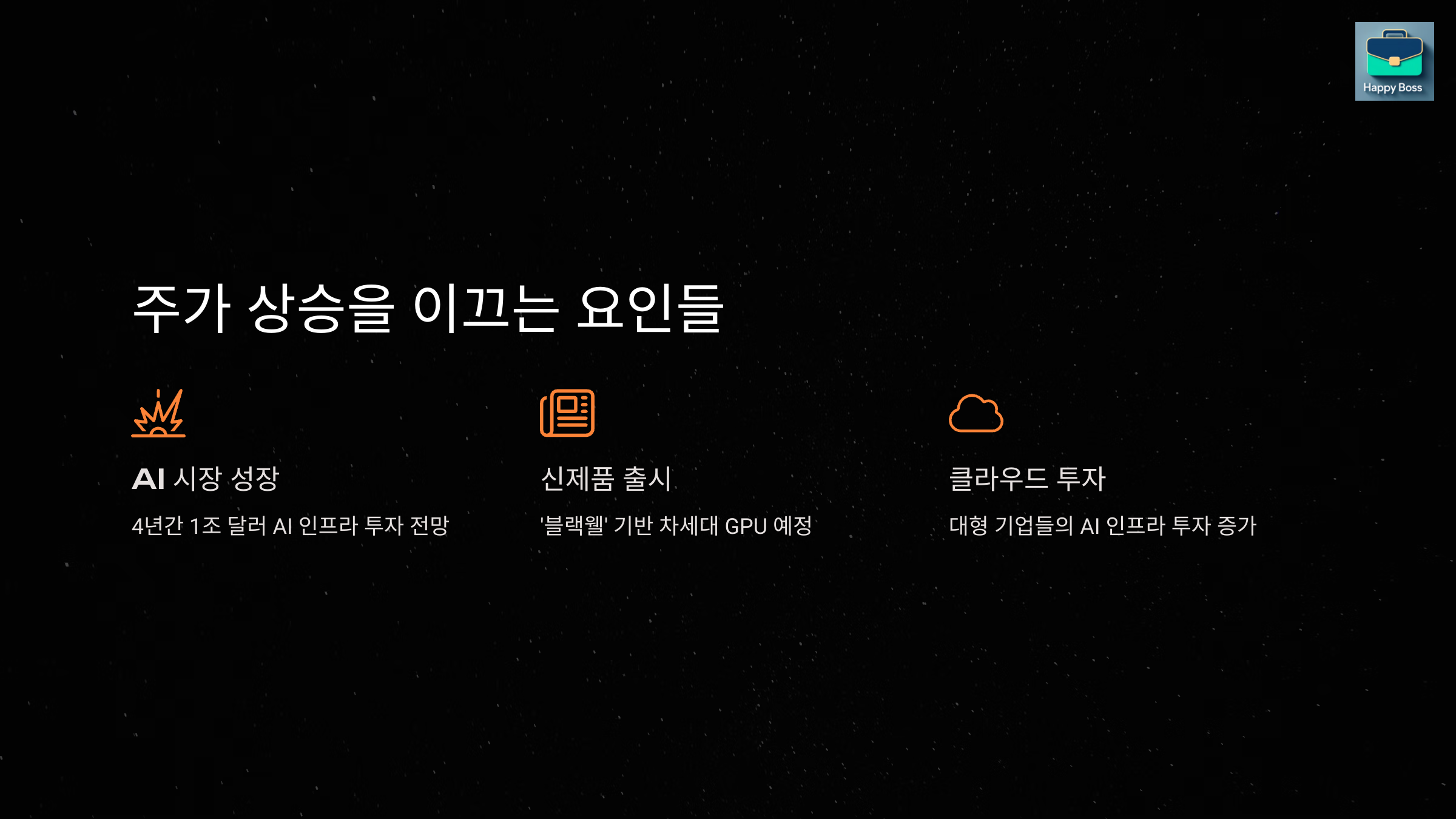 1. AI 시장의 폭발적 성장 💥: 엔비디아 CEO 젠슨 황은 향후 4년간 데이터센터 운영자들이 AI 인프라 구축에 1조 달러를 투자할 것으로 전망했습니다. 이는 엔비디아의 매출 증가로 직결될 전망입니다.