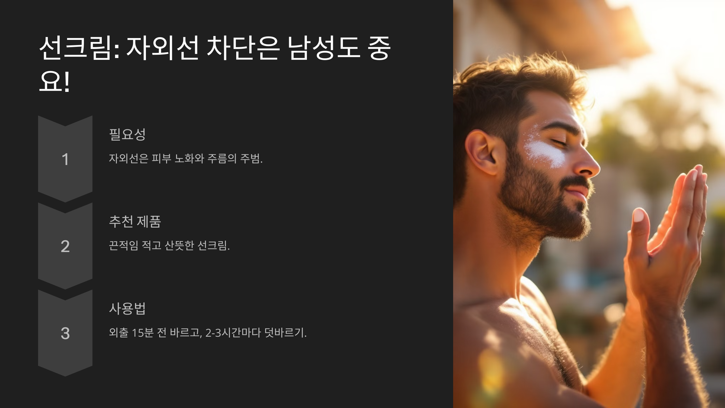 4️⃣ 선크림: 자외선 차단은 남성도 중요!