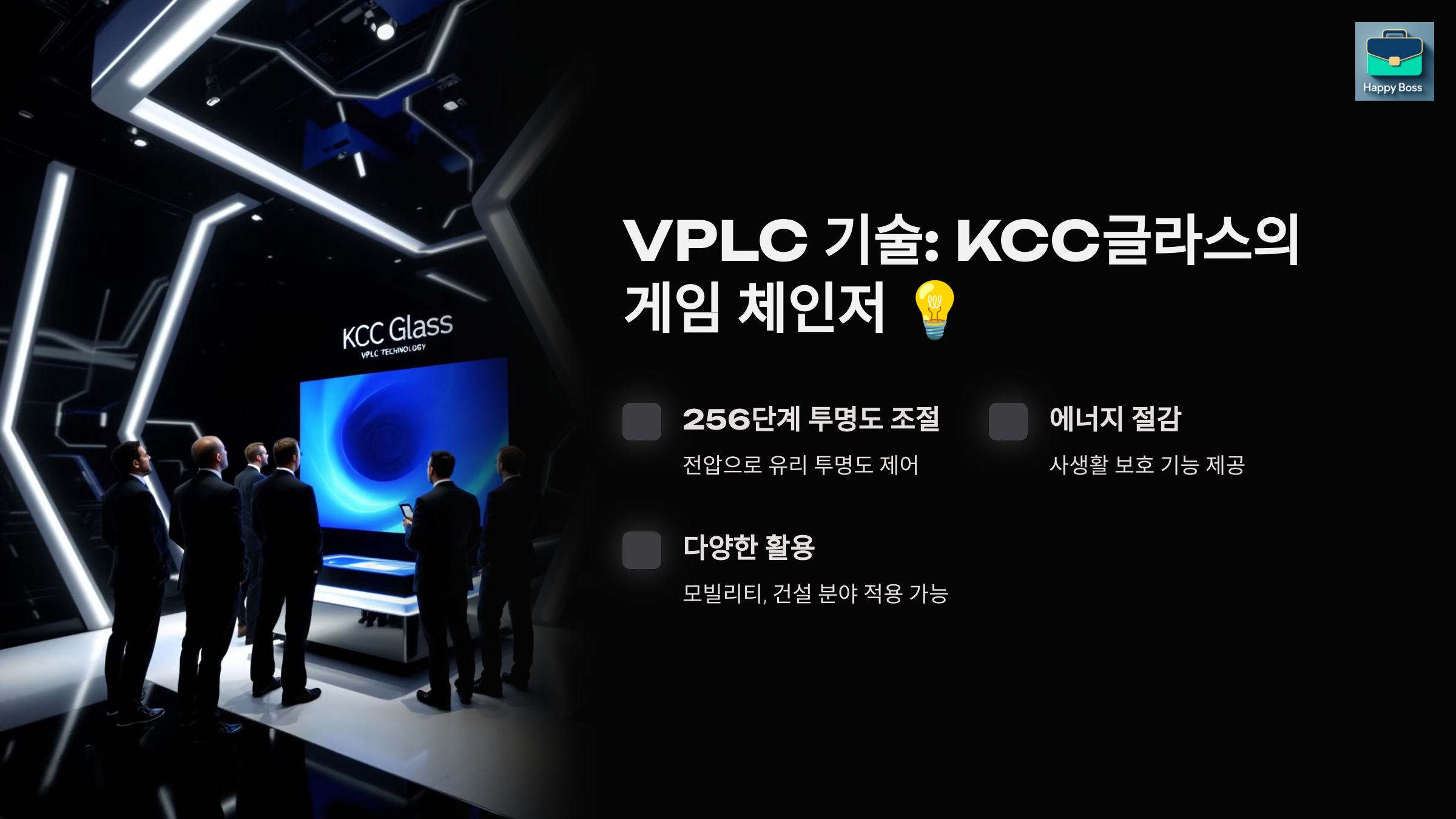 KCC글라스의 VPLC 기술은 분명 유리 산업의 판도를 바꿀 수 있는 혁신적인 기술입니다. 이는 단순한 기술 혁신을 넘어 우리의 일상을 더욱 스마트하고 효율적으로 만들 잠재력을 가지고 있습니다.