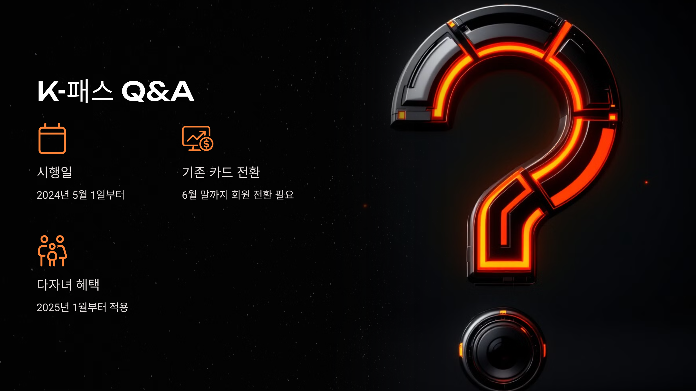 A: K-패스는 2024년 5월 1일부터 공식적으로 시행됩니다. 그전에 카드를 발급받고 회원가입을 완료하면, 시행일부터 바로 혜택을 받을 수 있습니다.