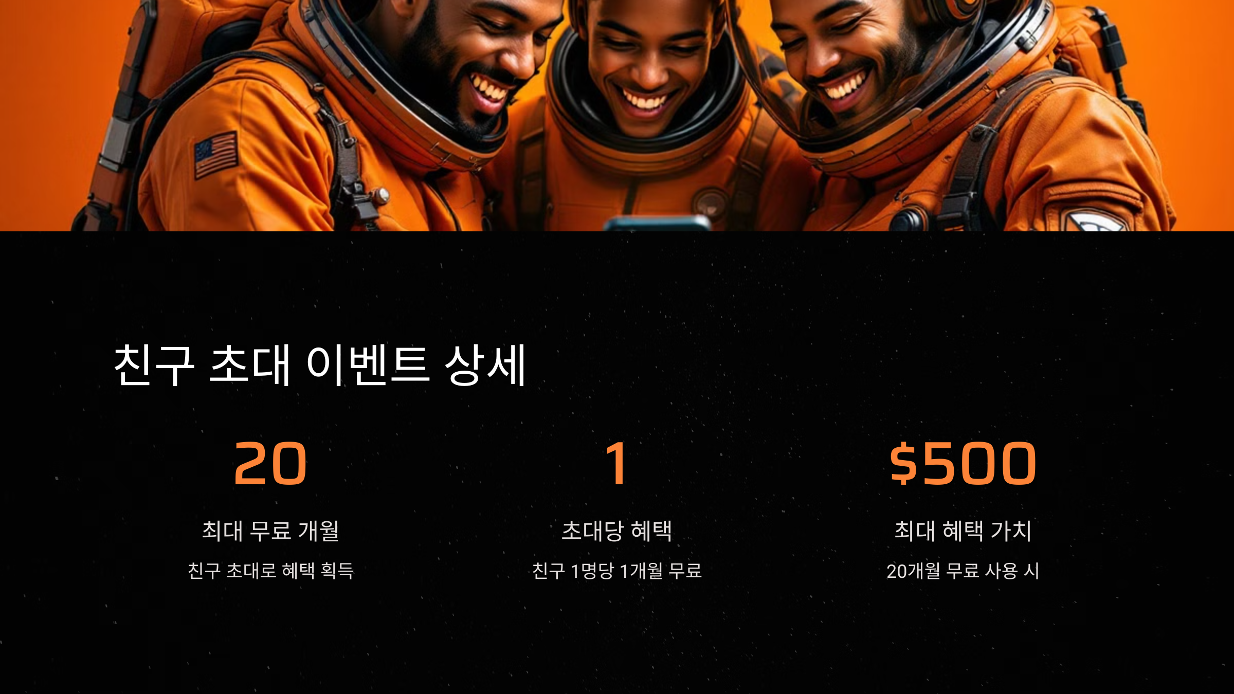 • 최대 혜택: 20명 초대 시 20개월 무료 사용 (약 $500 상당)