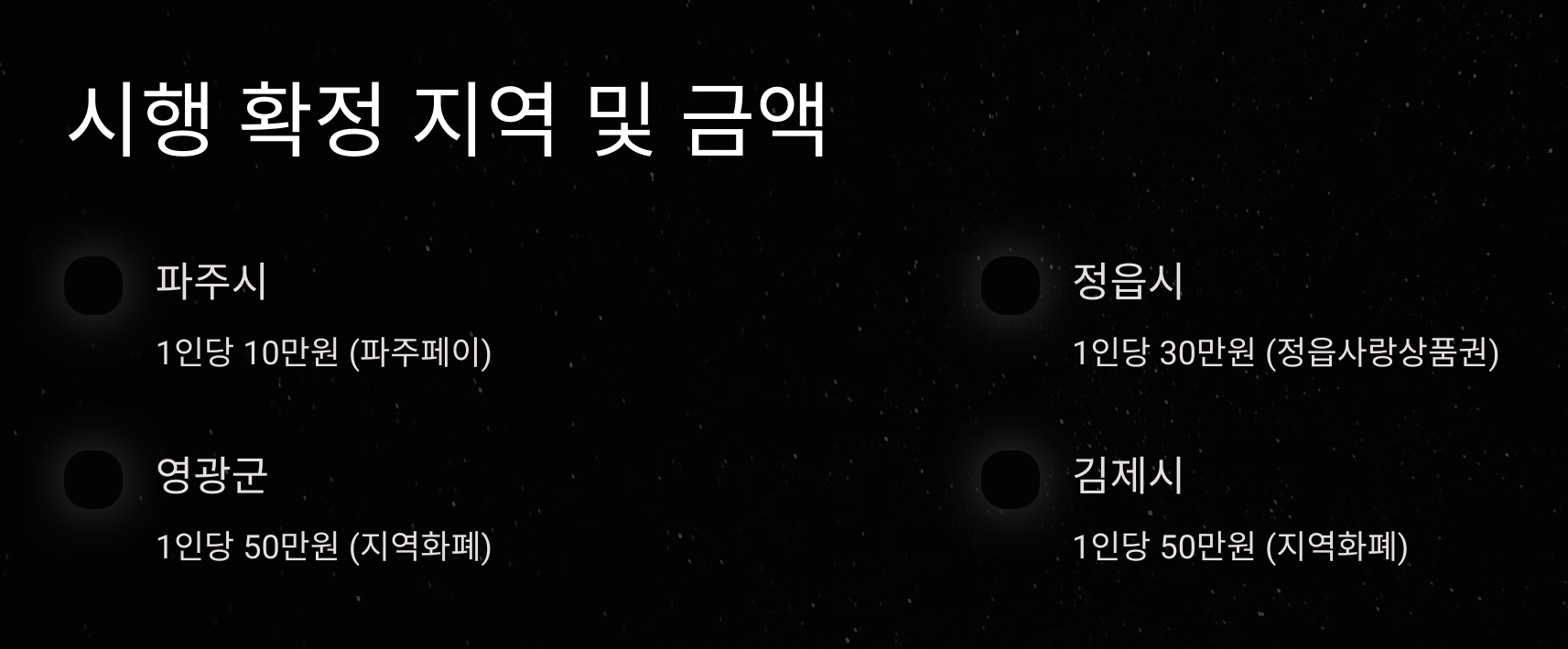 • 김제시: 1인당 50만원 (지역화폐)