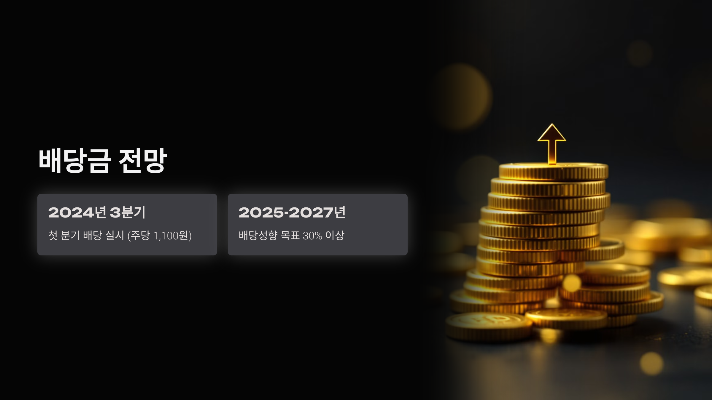 • 2024년 3분기에 처음으로 분기 배당을 실시 (주당 1,100원, 총 396억 원)