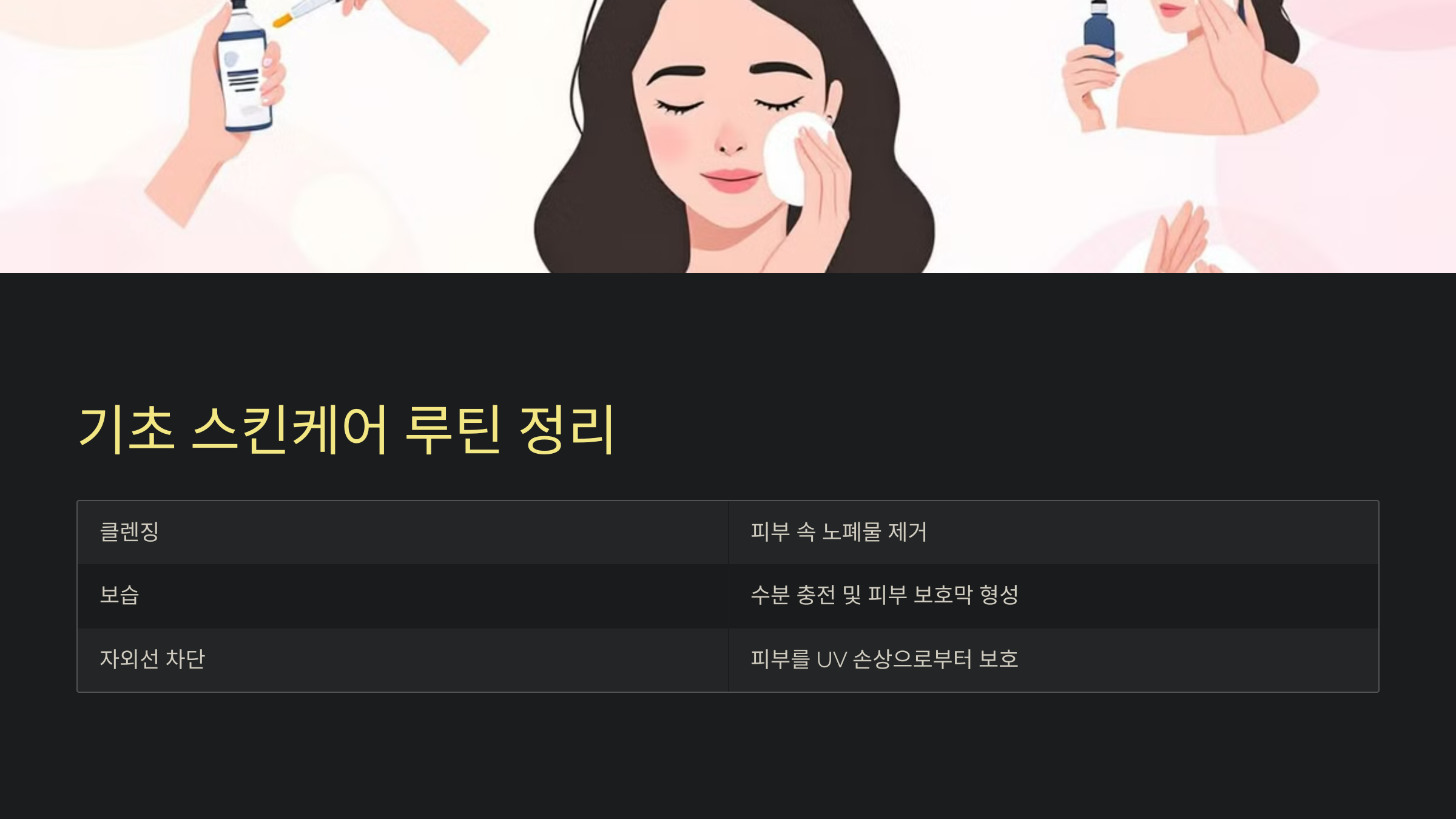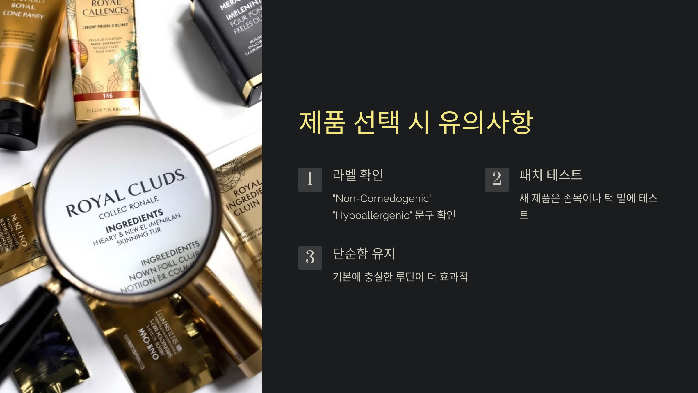 • 단순함 유지: 너무 많은 제품을 사용하는 것보다 기본에 충실한 루틴이 더 효과적입니다.