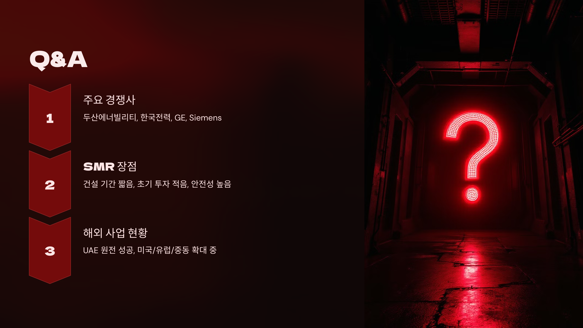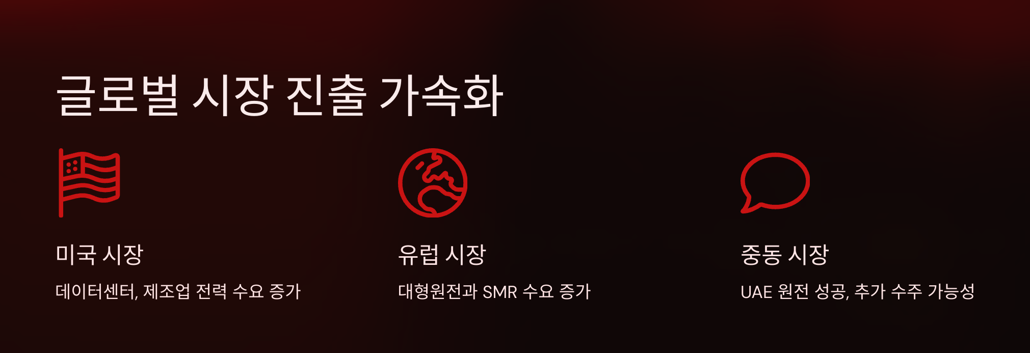 • 유럽 시장: 대형원전과 SMR 수요가 증가하고 있어, 새로운 성장 기회가 열릴 것으로 보입니다.