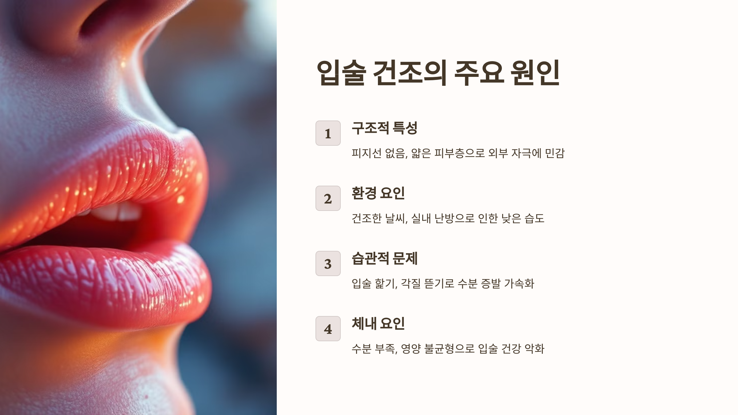 입술이 건조해지는 이유는 생각보다 다양합니다. 주요 원인을 이해하면 문제를 해결하는 데 훨씬 도움이 됩니다.