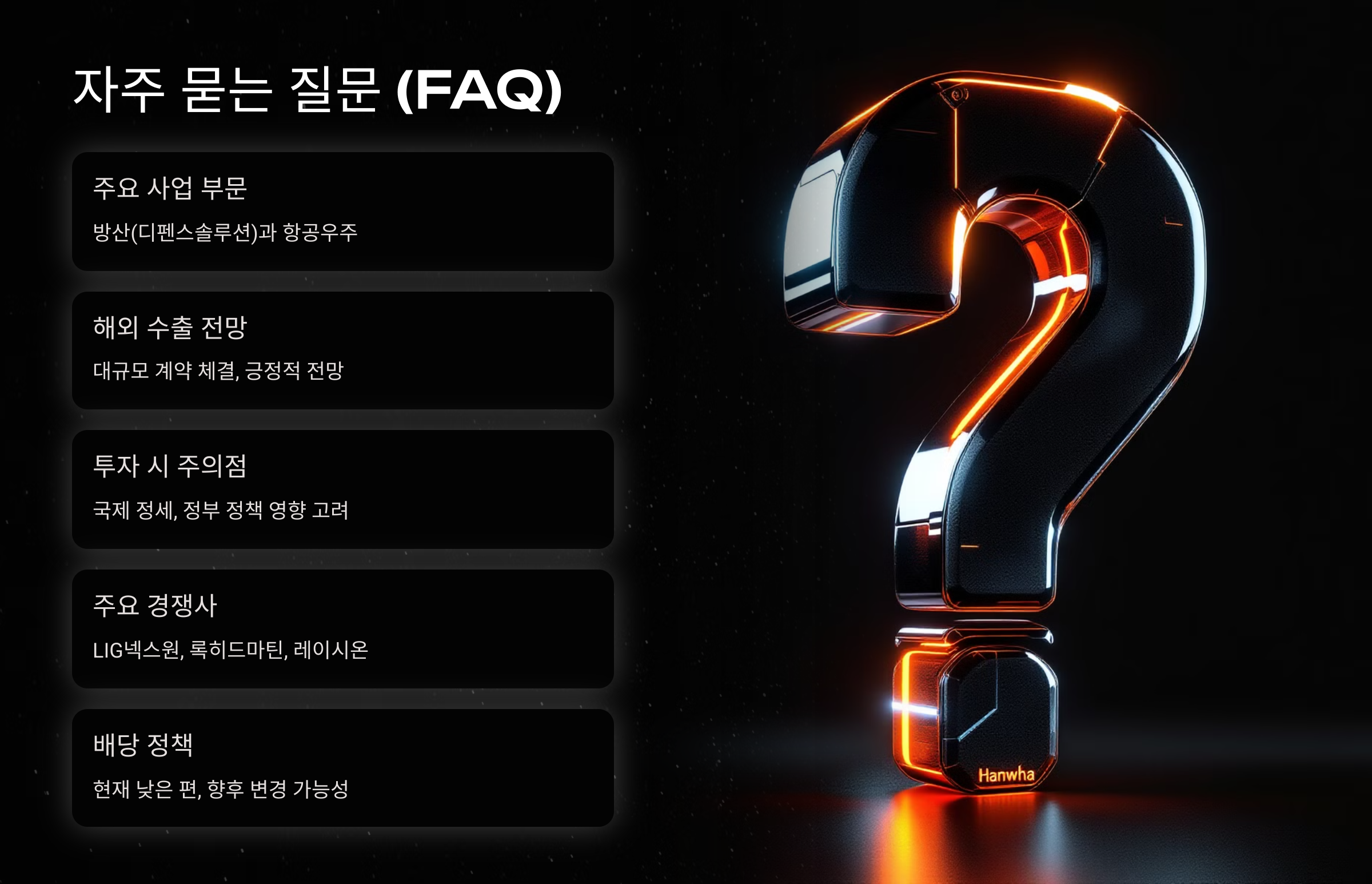 3. Q: 한화에어로스페이스 주식 투자 시 주의할 점은 무엇인가요?