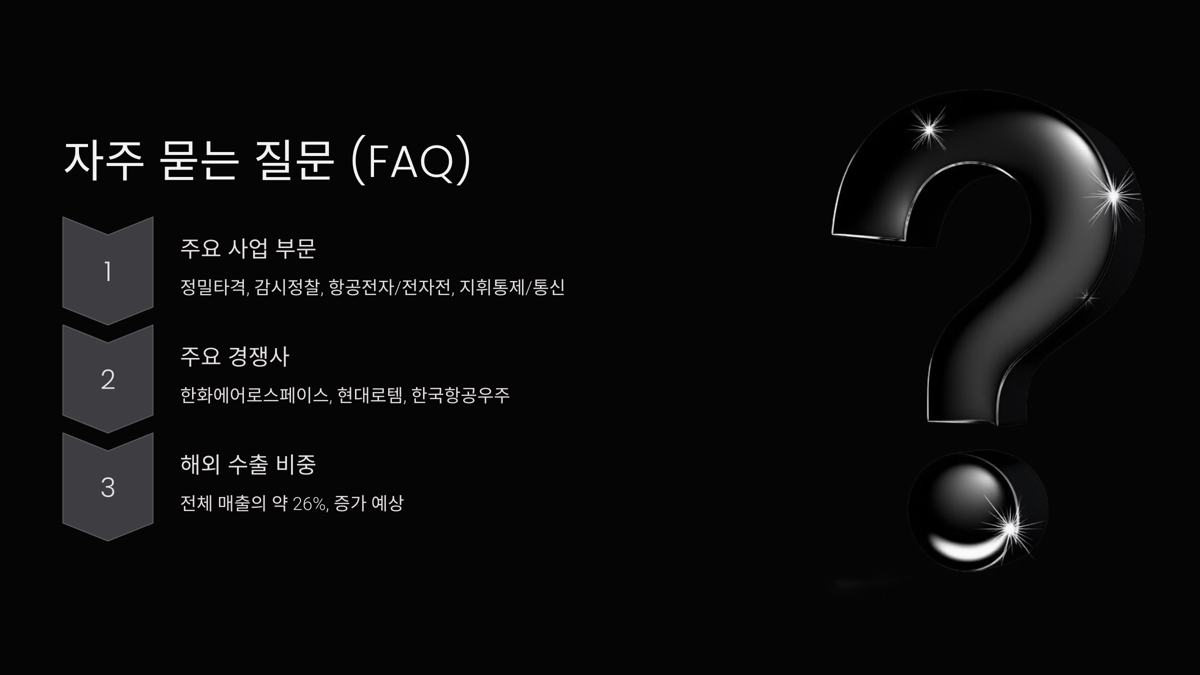 3. 기술 혁신 투자: 무인화 솔루션 및 첨단 유도무기 개발로 경쟁력 강화.