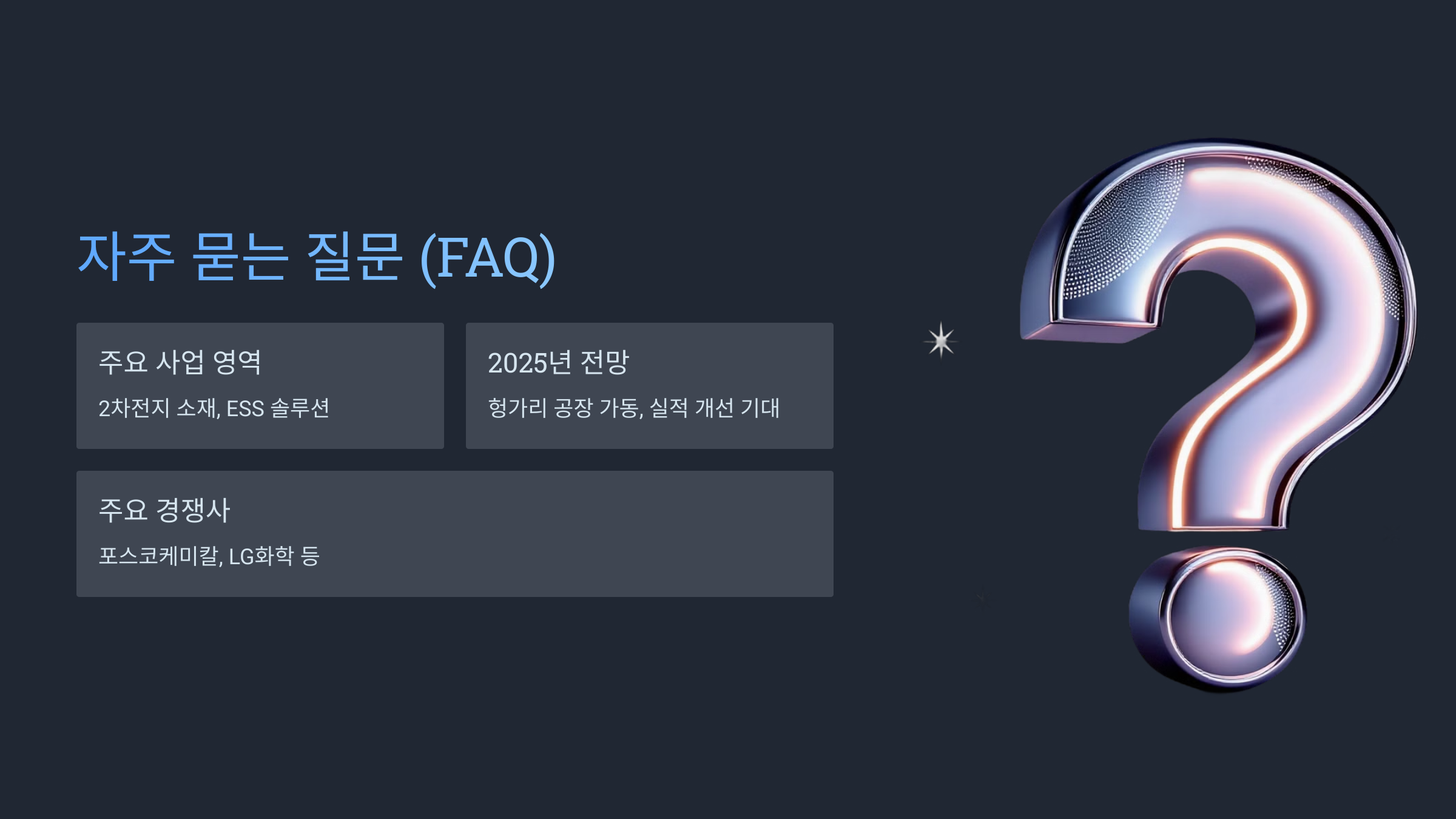 1. Q: 에코프로의 주요 사업 영역은 무엇인가요?