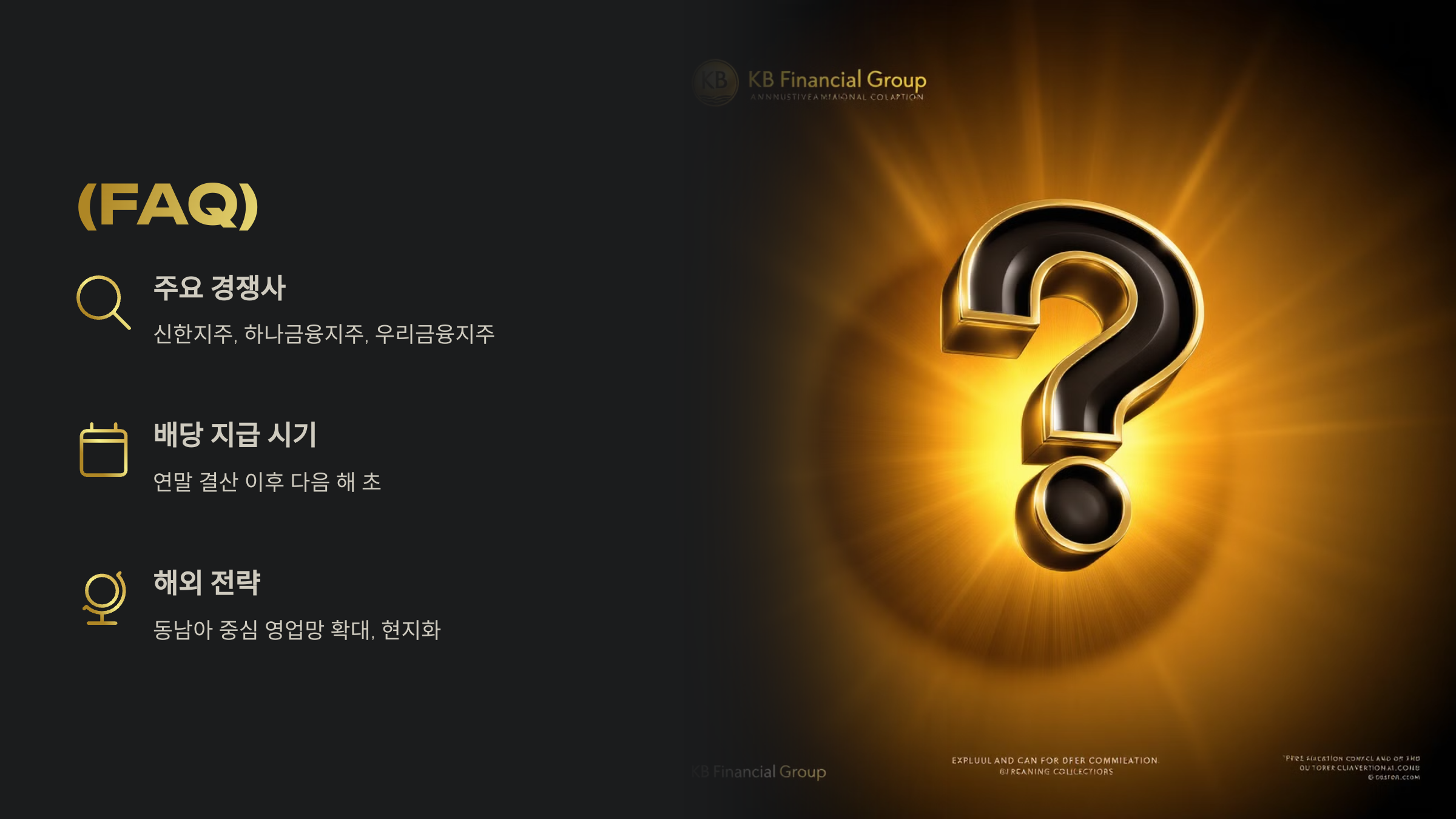 2. Q: KB금융의 배당 지급 시기는 언제인가요?