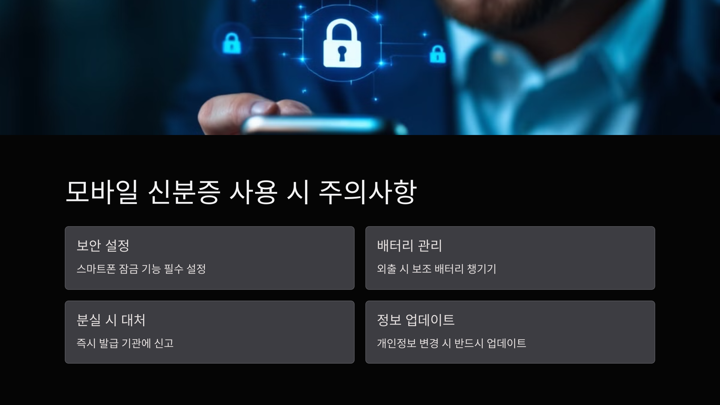 • 📵 분실 시 대처: 스마트폰 분실 시 즉시 발급 기관에 신고하세요.
