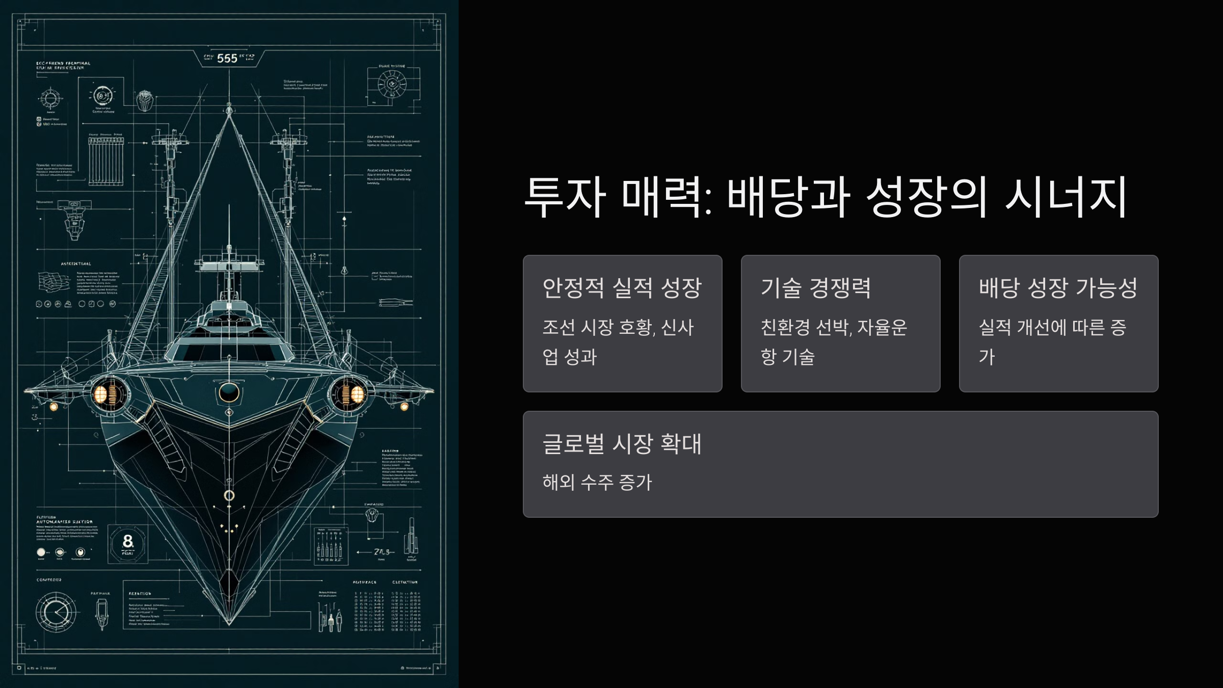 1. 안정적인 실적 성장: 조선 시장의 호황과 신사업 성과