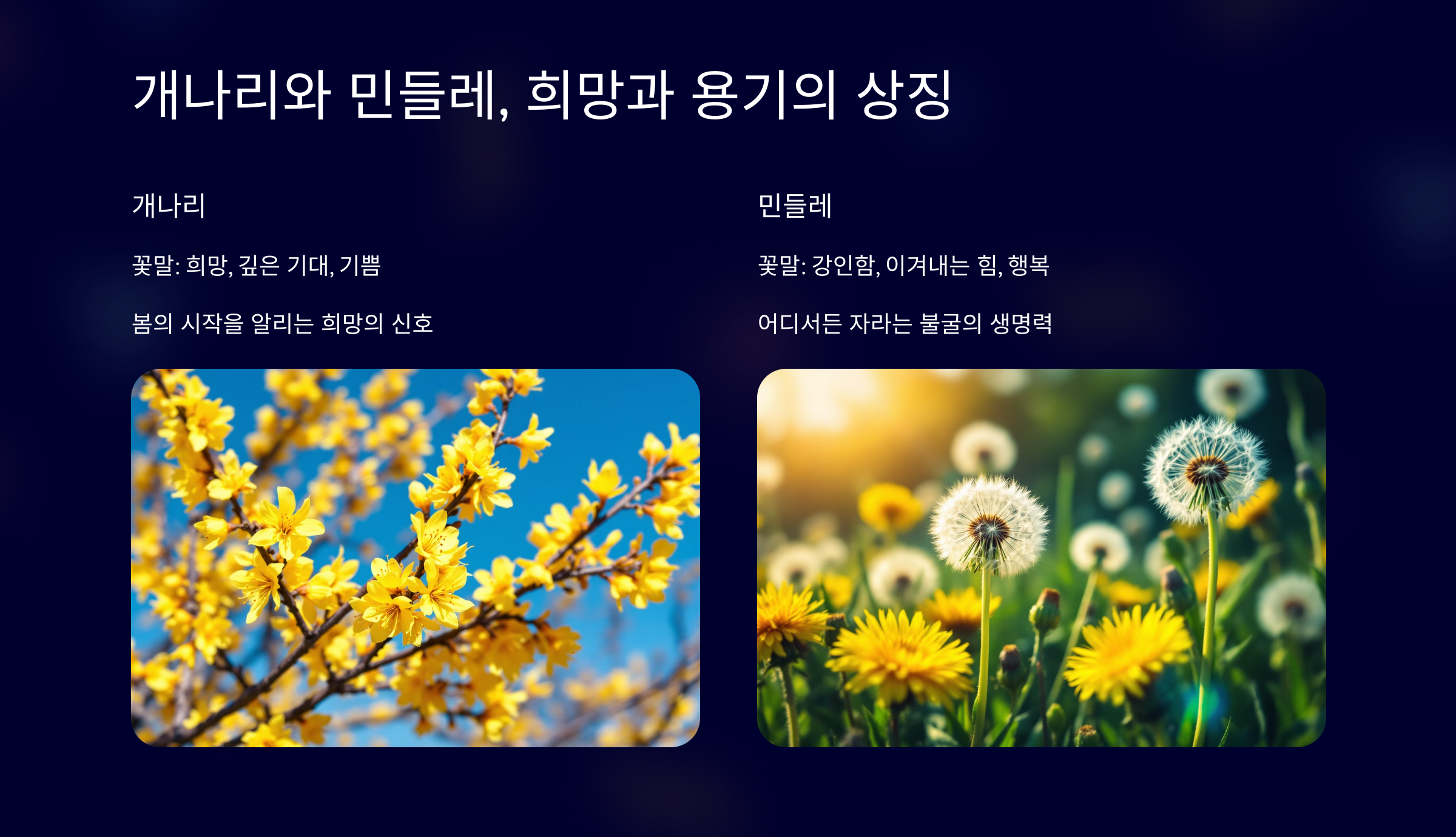 2️⃣ 개나리와 민들레, 희망과 용기의 상징 🌼