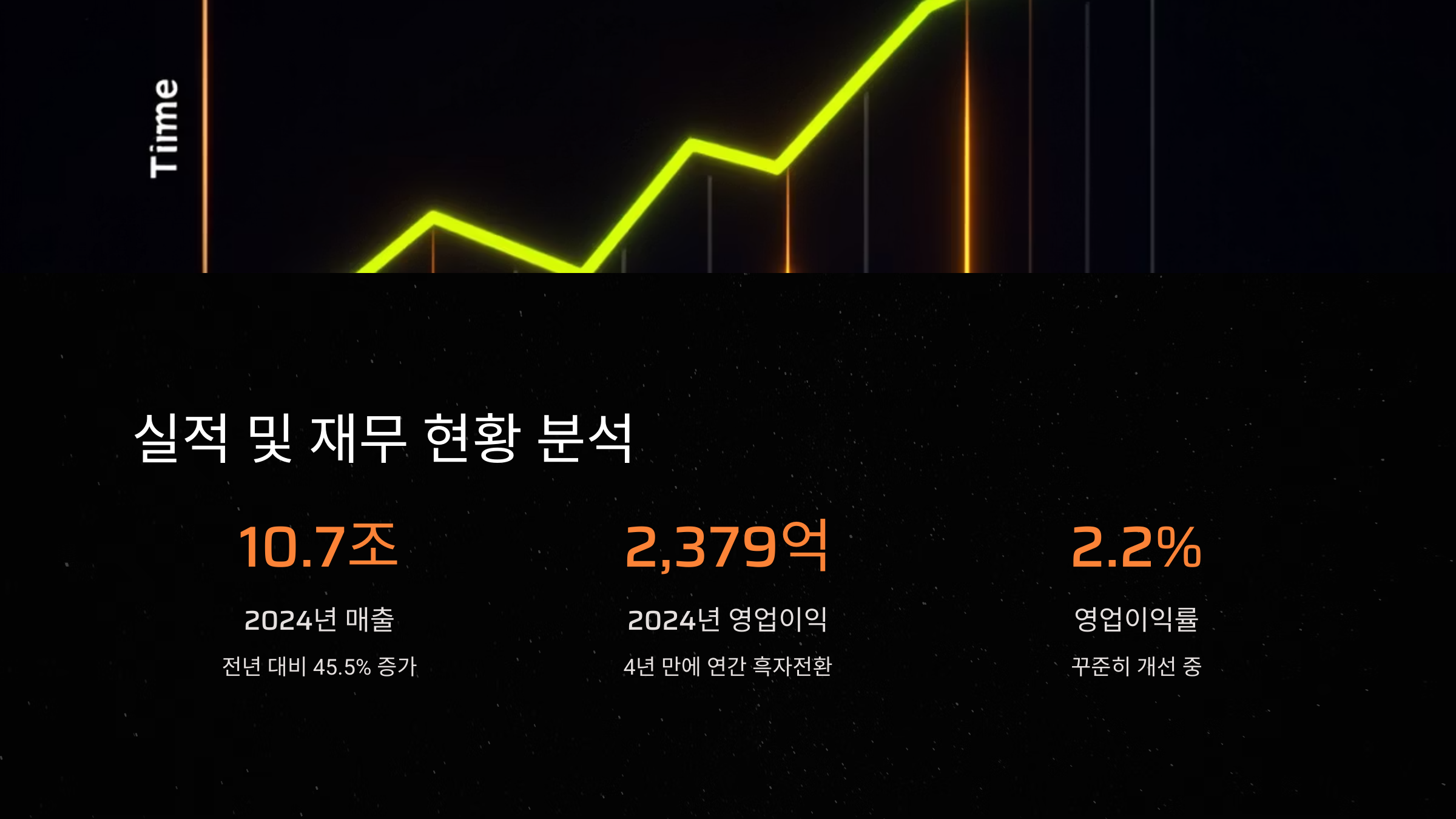 매출은 전년 대비 45.5% 증가, 영업이익률도 2.2%로 꾸준히 개선되고 있습니다.