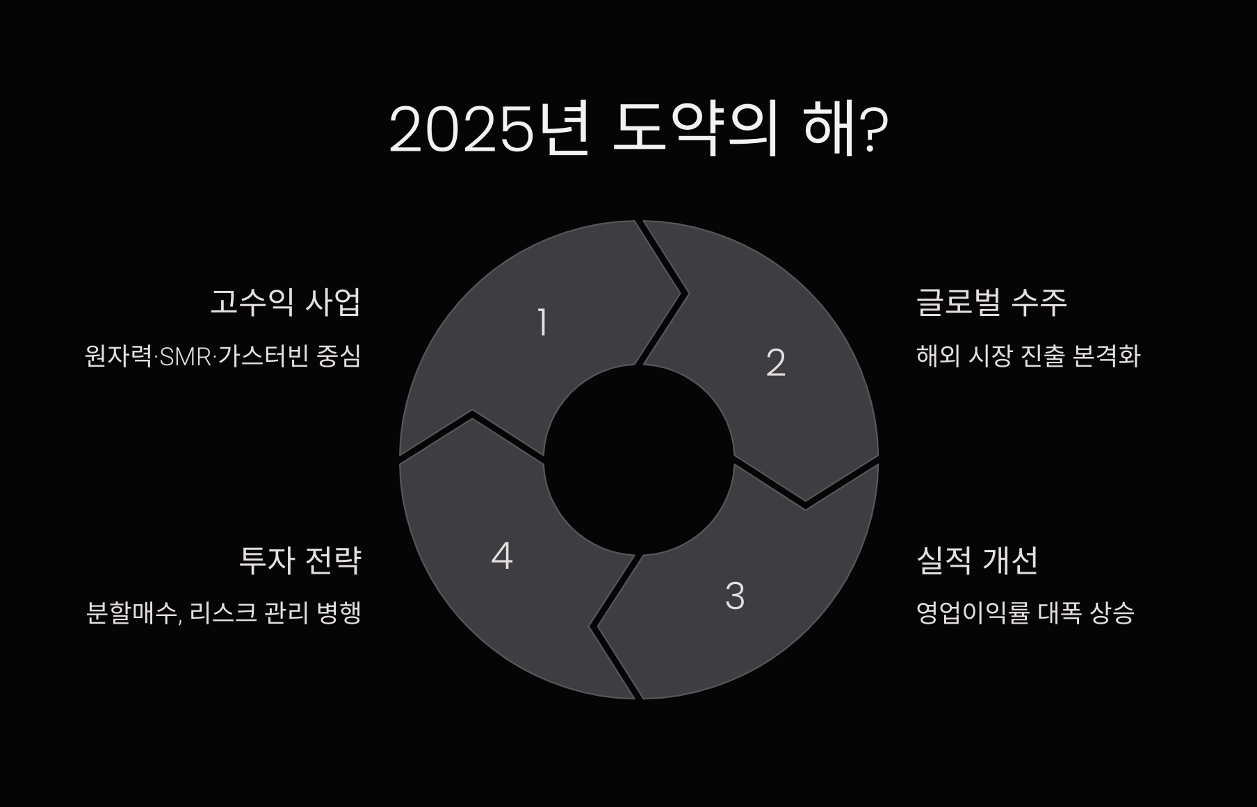 2024년 실적 초과 달성과 함께, 2025년에는 원전·SMR(소형모듈원자로)·가스터빈 등 핵심 사업에서 수주 확대와 수익성 개선이 본격화될 전망입니다.