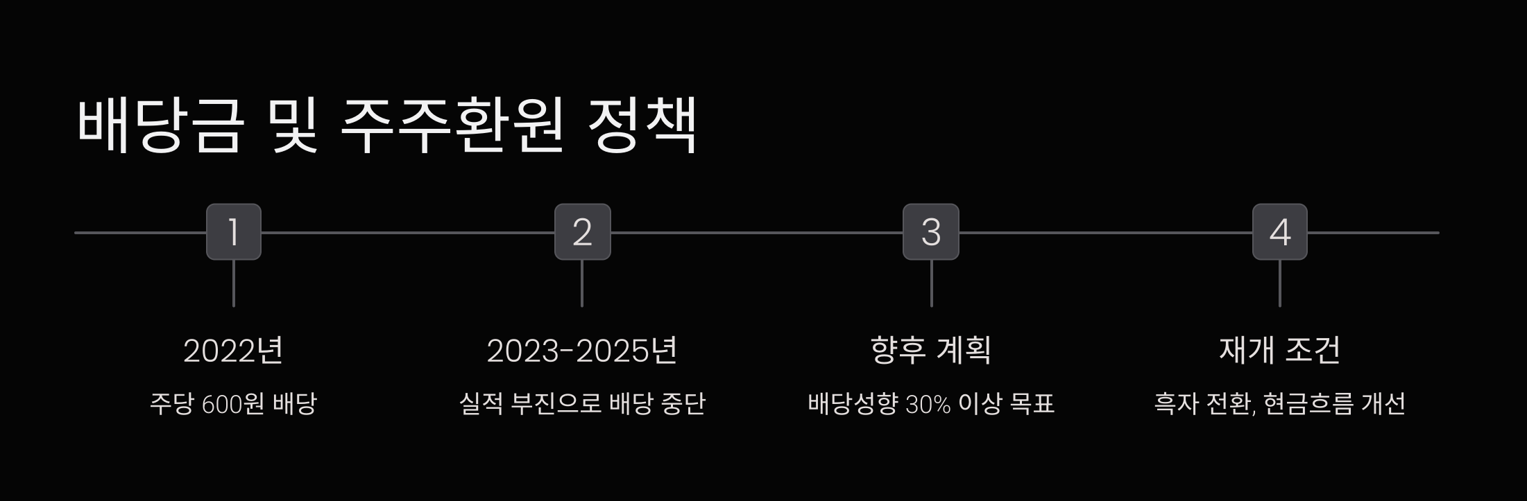 실적 개선과 현금흐름 안정화가 이뤄질 경우, 배당 재개 및 확대 가능성에 주목할 필요가 있습니다.