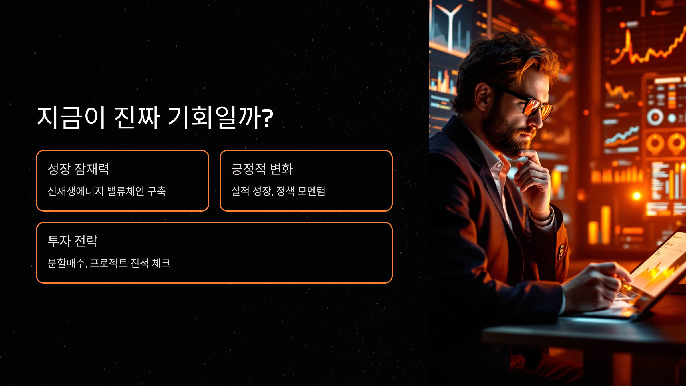 신재생에너지 밸류체인 구축, 대형 프로젝트 수주 정치·정책 변수, 단기 변동성