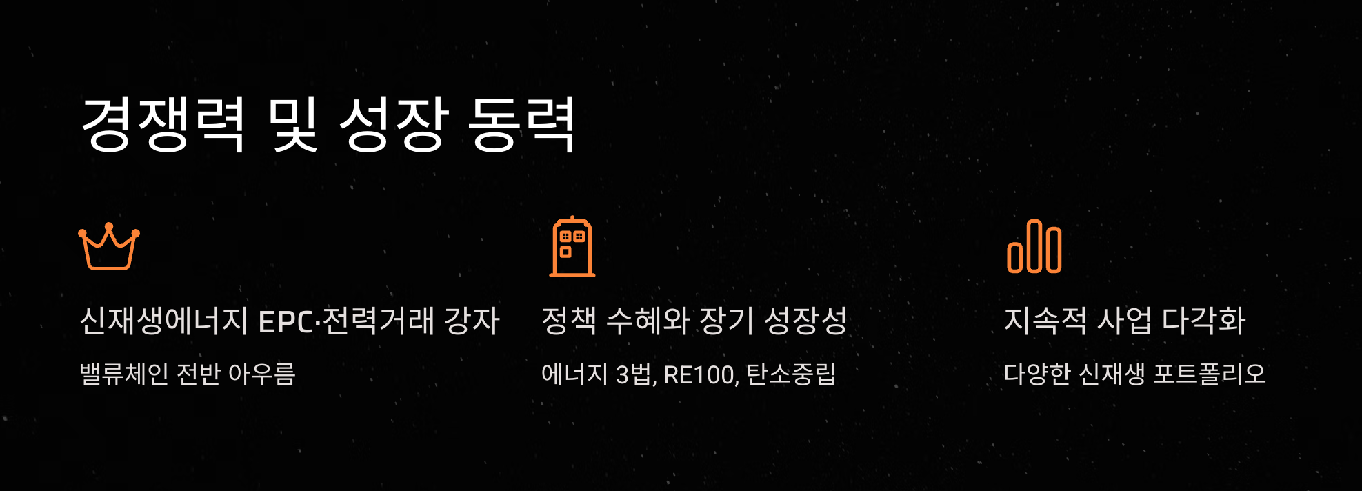 태양광 구조화, 해상풍력, 연료전지, ESS 등 다양한 신재생 포트폴리오를 구축해, 단일 업황 리스크를 분산하고 있습니다.