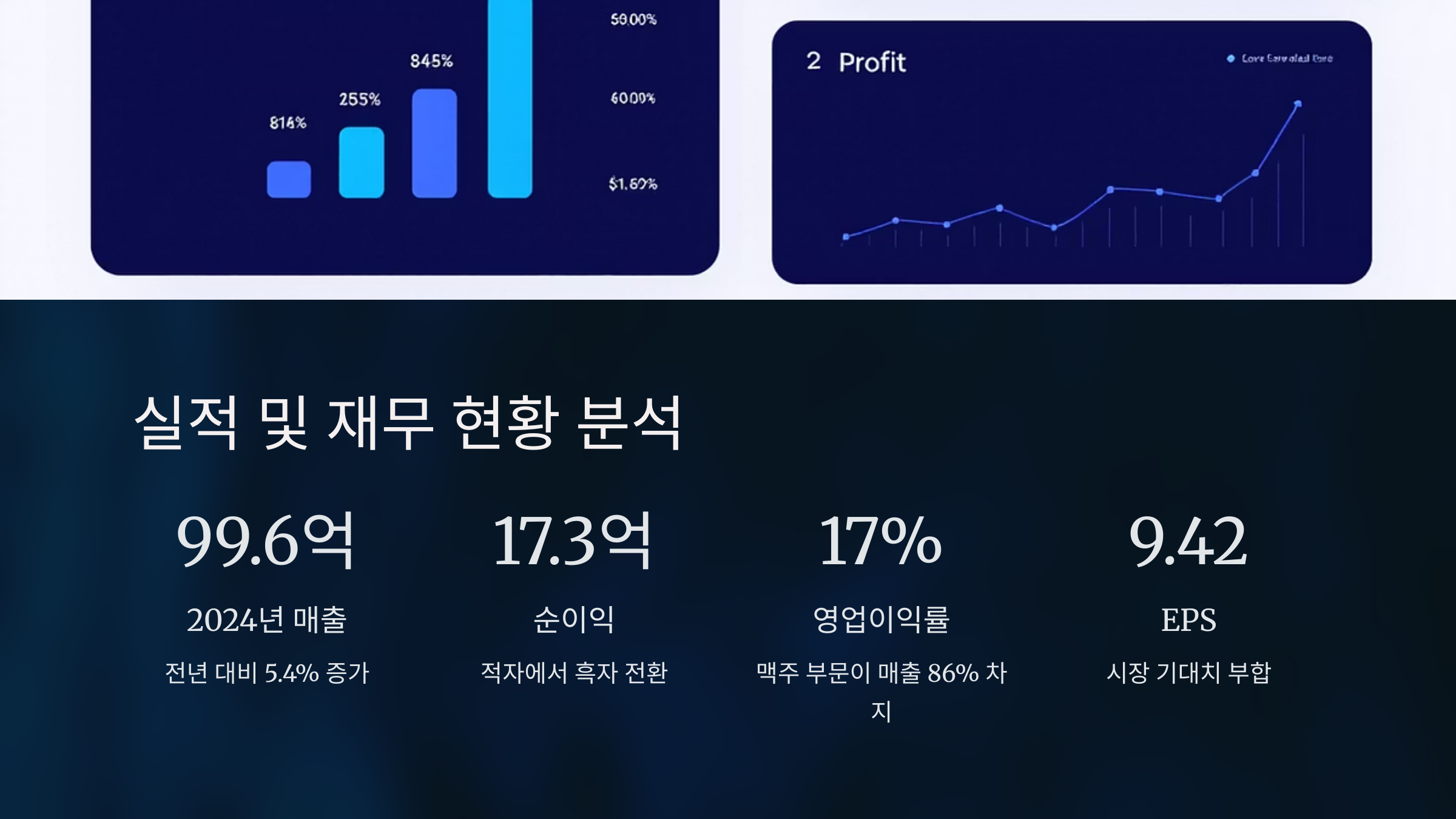 회사는 2025년 맥주 부문 매출 성장률 7~9%, 전체 매출 성장률 24%를 제시했다.