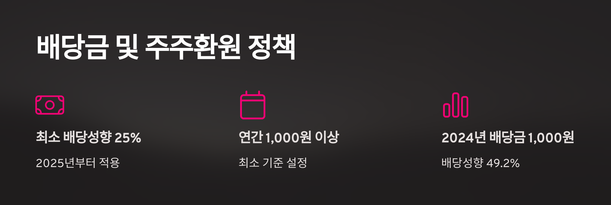 2025년부터 배당성향 최소 25% 이상, 연간 1,000원 이상(최소 기준) 지급을 약속했습니다.