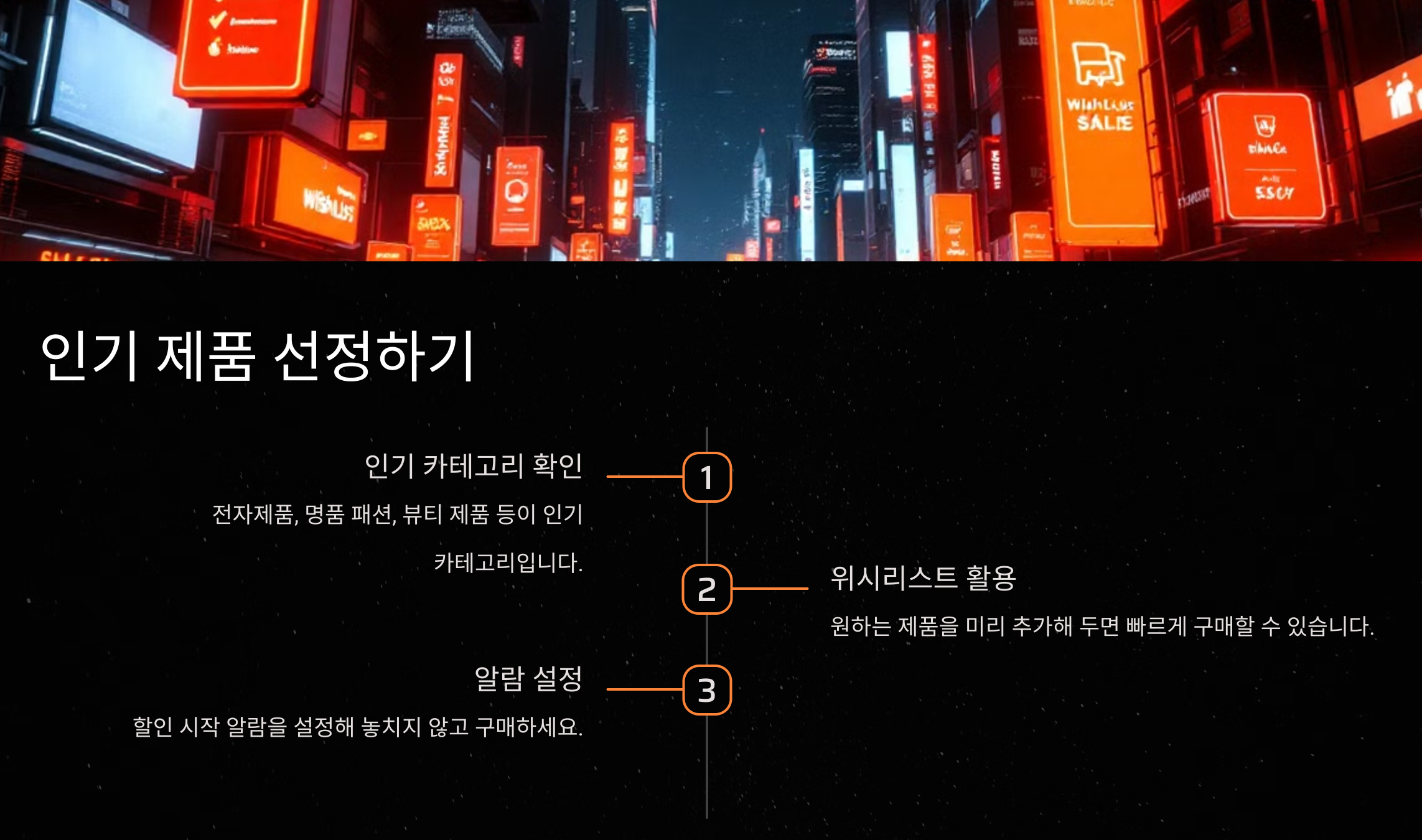 • 알람 설정: 인기 상품은 빠르게 품절되므로, 할인 시작 알람을 설정해 두면 놓치지 않고 구매할 수 있습니다.