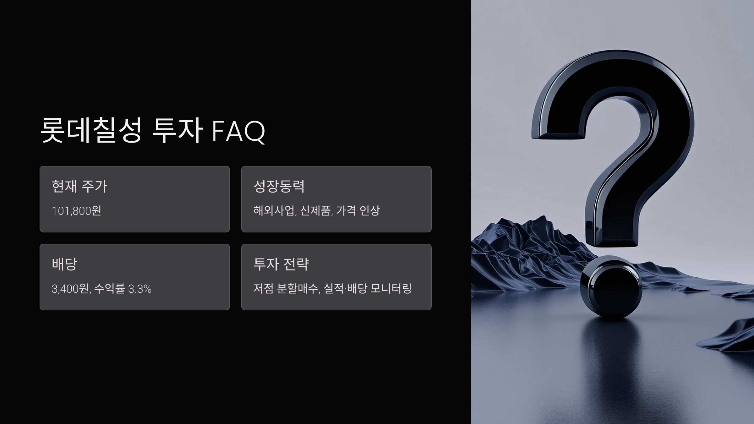 이 글에서는 실적, 경쟁력, 주가분석, 배당, 성장·리스크를 바탕으로 롯데칠성의 투자 가치를 냉정하게 진단합니다.