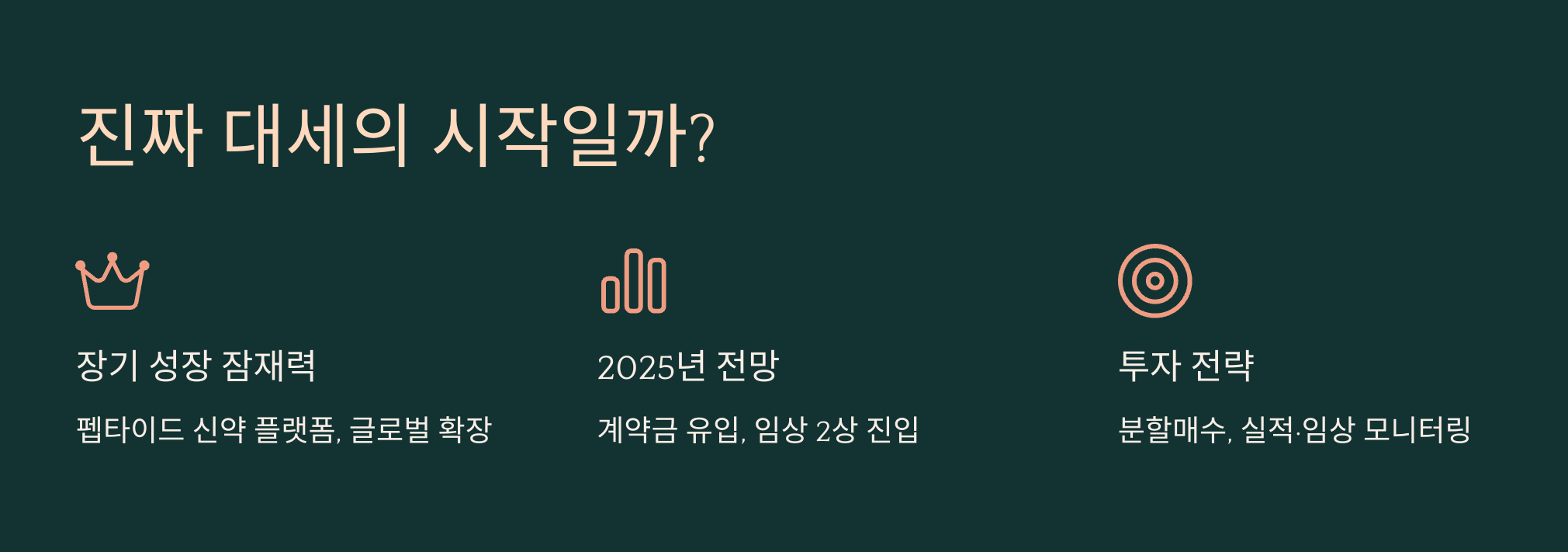 다만 단기 급등 후 변동성, 실적 적자, 단일 파이프라인 리스크 등은 반드시 체크해야 하며, 분할매수와 실적·임상 모니터링, 추가 기술이전 소식에 주목하는 전략이 유효합니다.