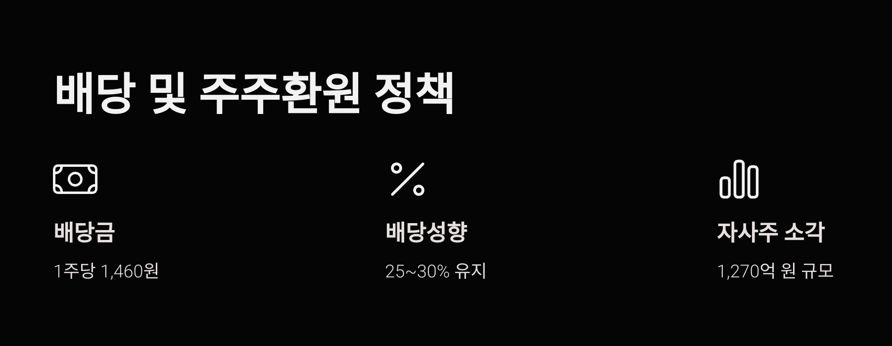 2025년 2월 1,270억 원 규모 자사주 소각, 배당 기준일 선배당제 도입 등 주주가치 제고에 적극적입니다.